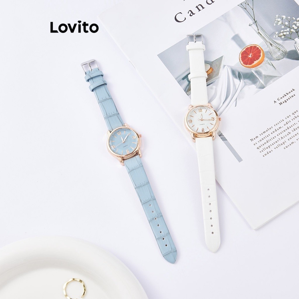 Lovito Đồng hồ đeo tay thạch anh cơ bản thường ngày l63ad288 cho nữ (Nâu/Trắng/Xanh lá/Đen)