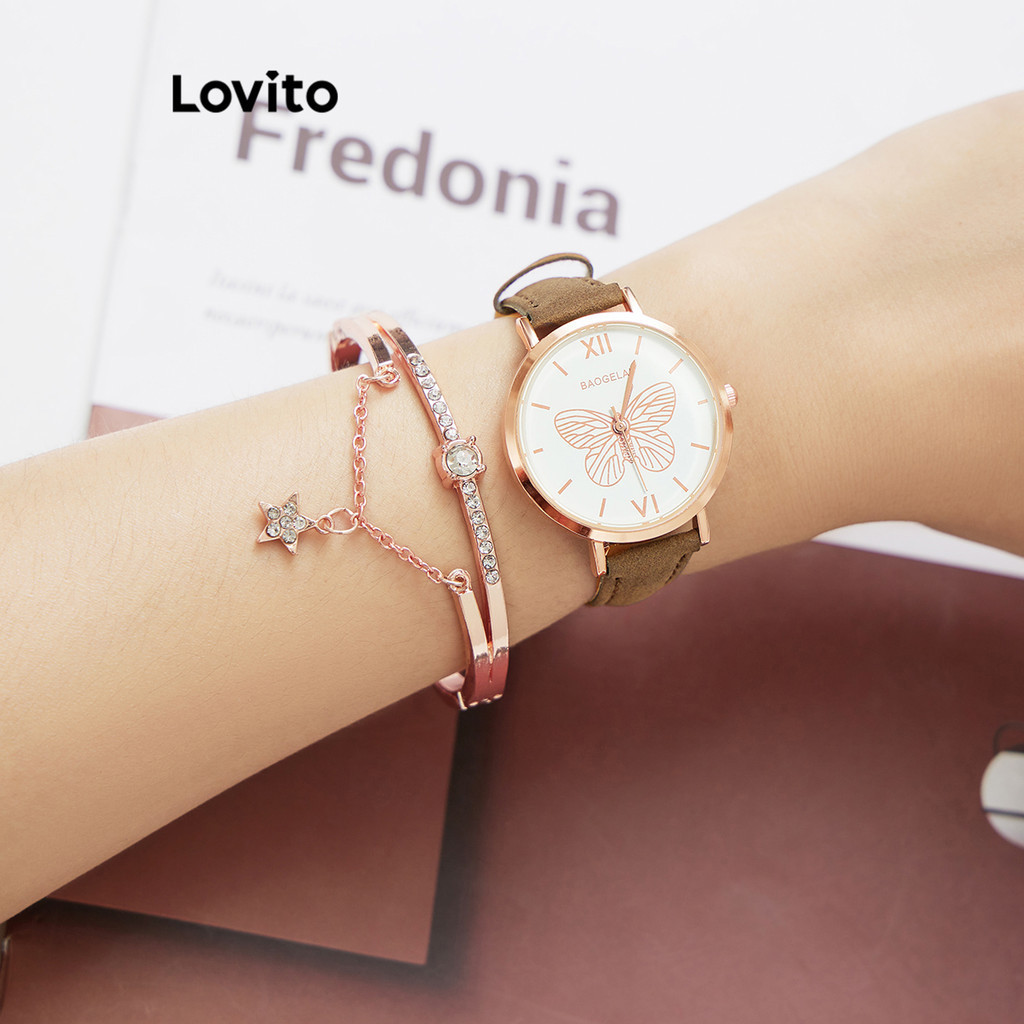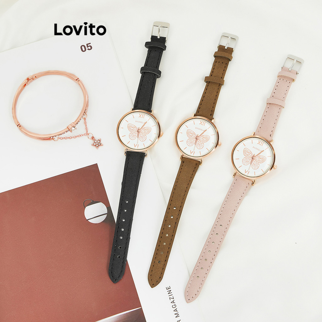 Lovito Đồng hồ đeo tay thạch anh cơ bản thường ngày l63ad288 cho nữ (Nâu/Trắng/Xanh lá/Đen)