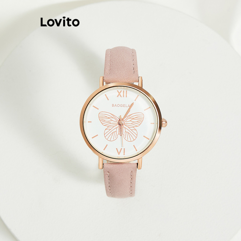 Lovito Đồng hồ đeo tay thạch anh ngọc trai họa tiết bướm thường ngày cho Nữ lfa12721