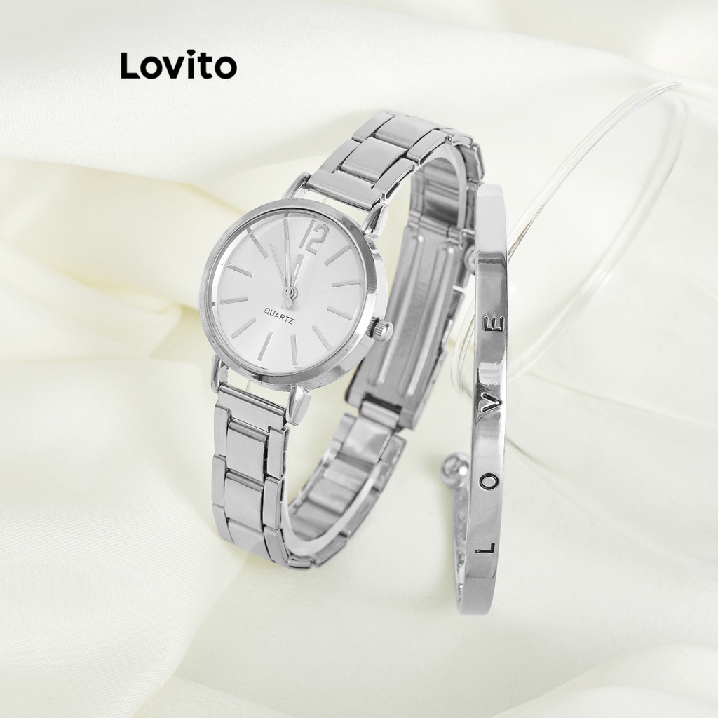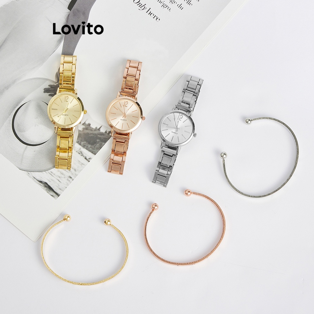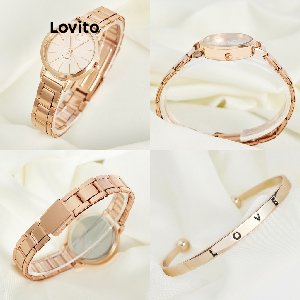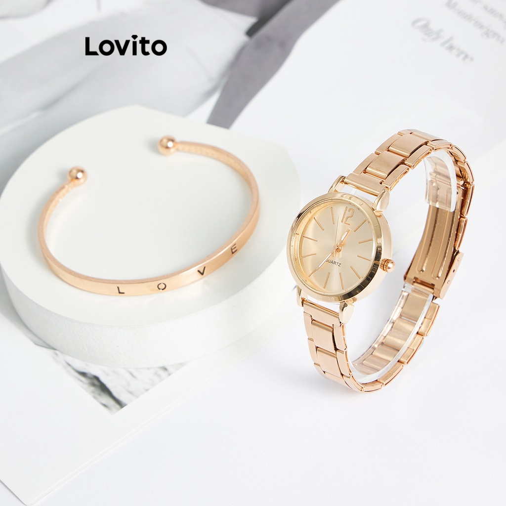 Lovito Đồng hồ đeo tay thạch anh cơ bản bằng kim loại thường ngày cho Nữ lfa14058