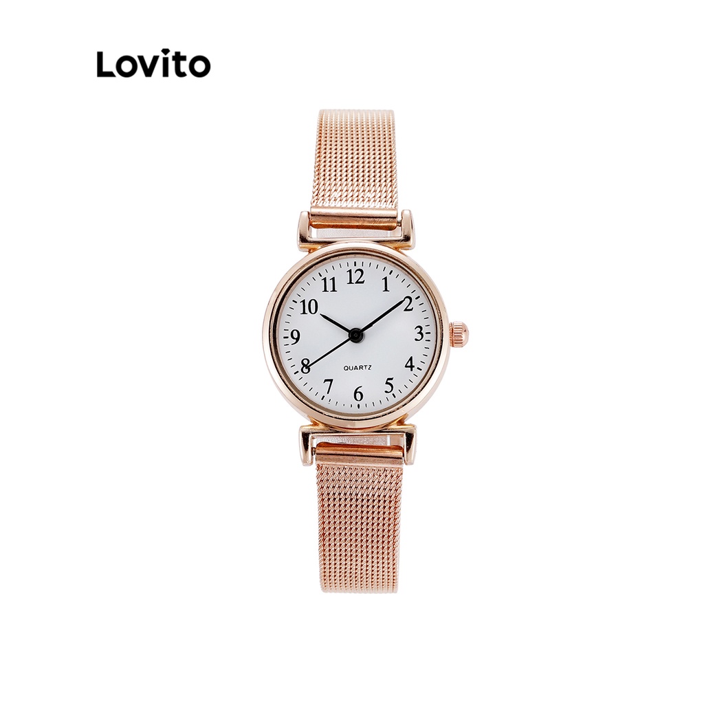 Lovito Đồng hồ đeo tay thạch anh kim loại trơn thường ngày l63ad291 (Nâu/Xám/Hồng/Bạc/Đen)