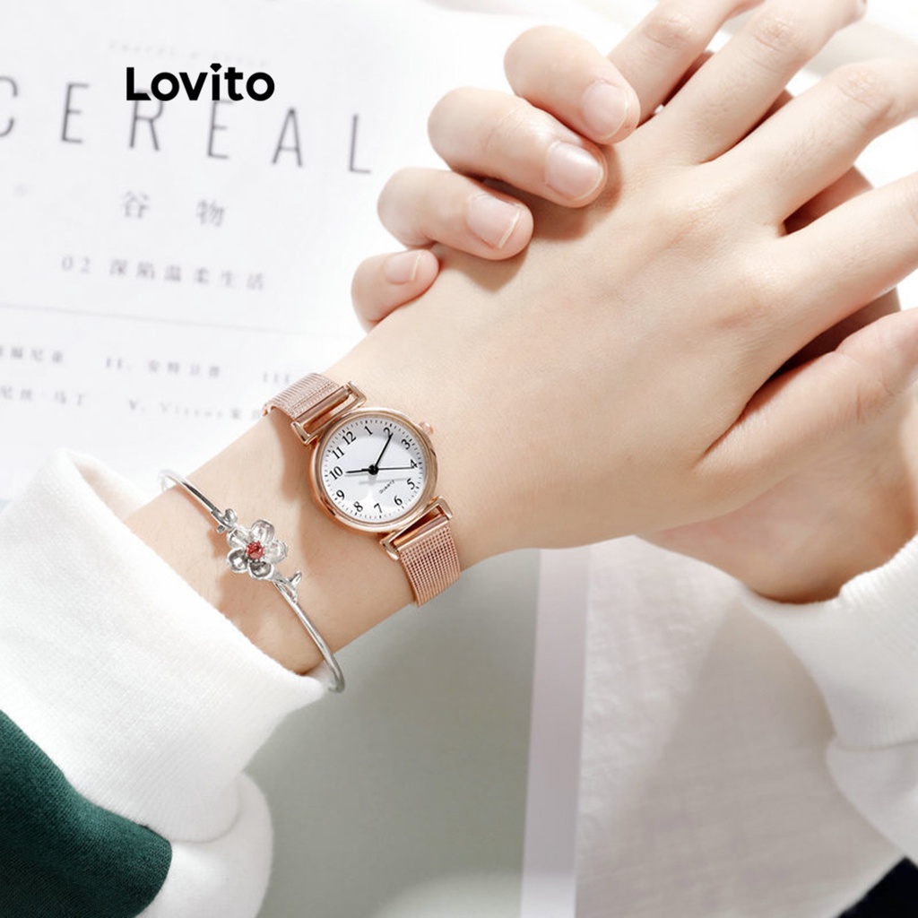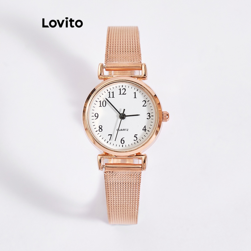 Lovito Đồng hồ đeo tay thạch anh cơ bản bằng kim loại thường ngày cho Nữ lfa14058