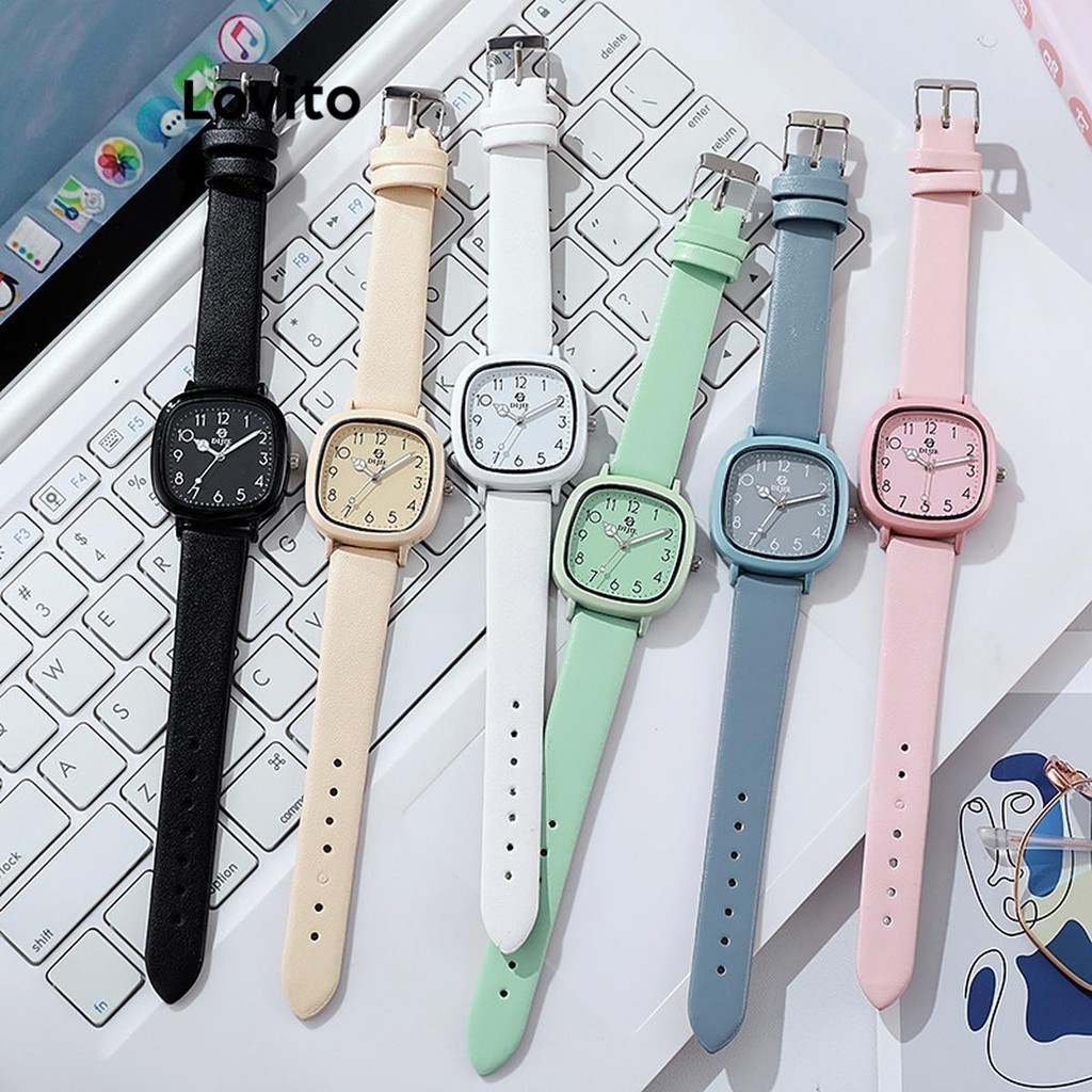 Lovito Đồng hồ đeo tay thạch anh cơ bản thường ngày l63ad288 cho nữ (Nâu/Trắng/Xanh lá/Đen)