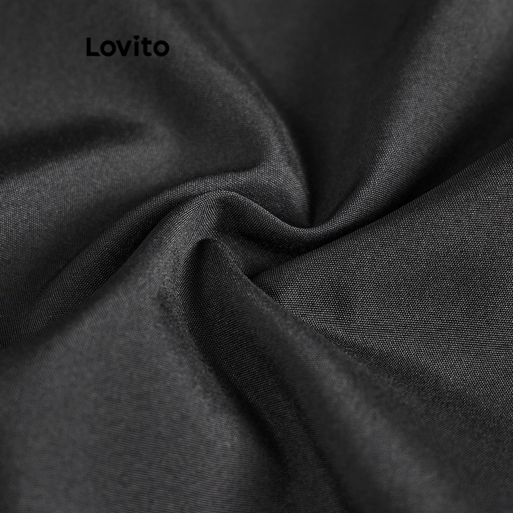 Lovito áo ba lỗ xếp ly dây rút màu trơn phong cách thanh lịch cho nữ lne33079 (màu kaki/mơ/Màu đen)