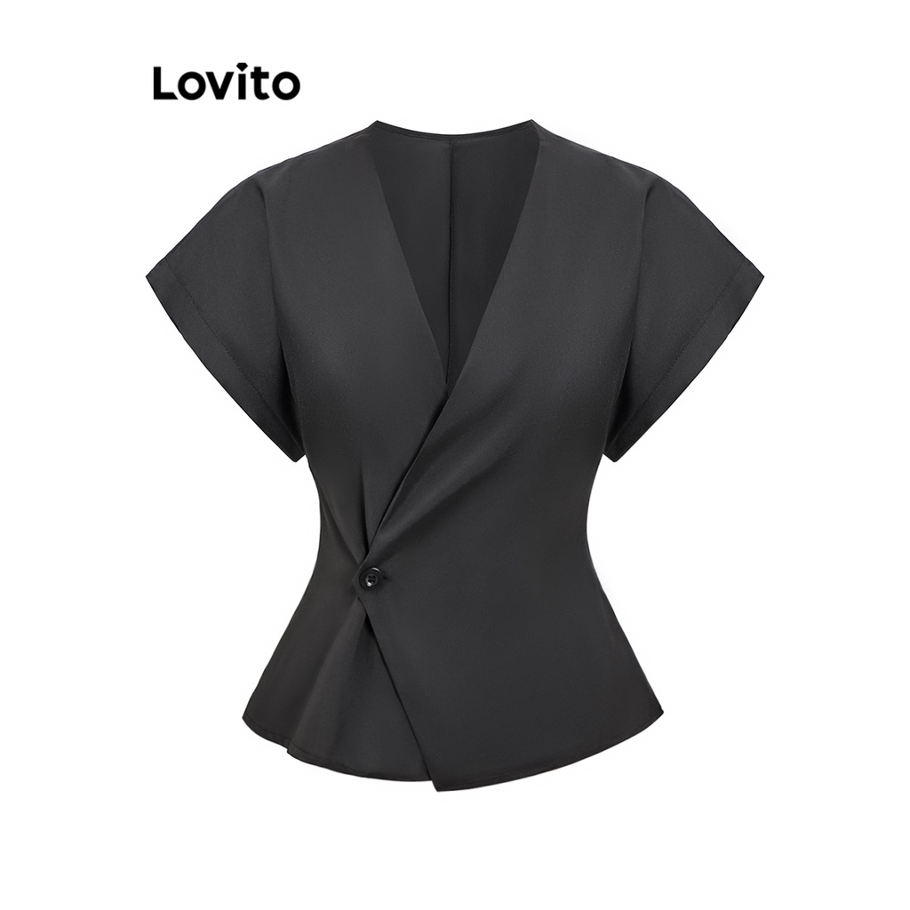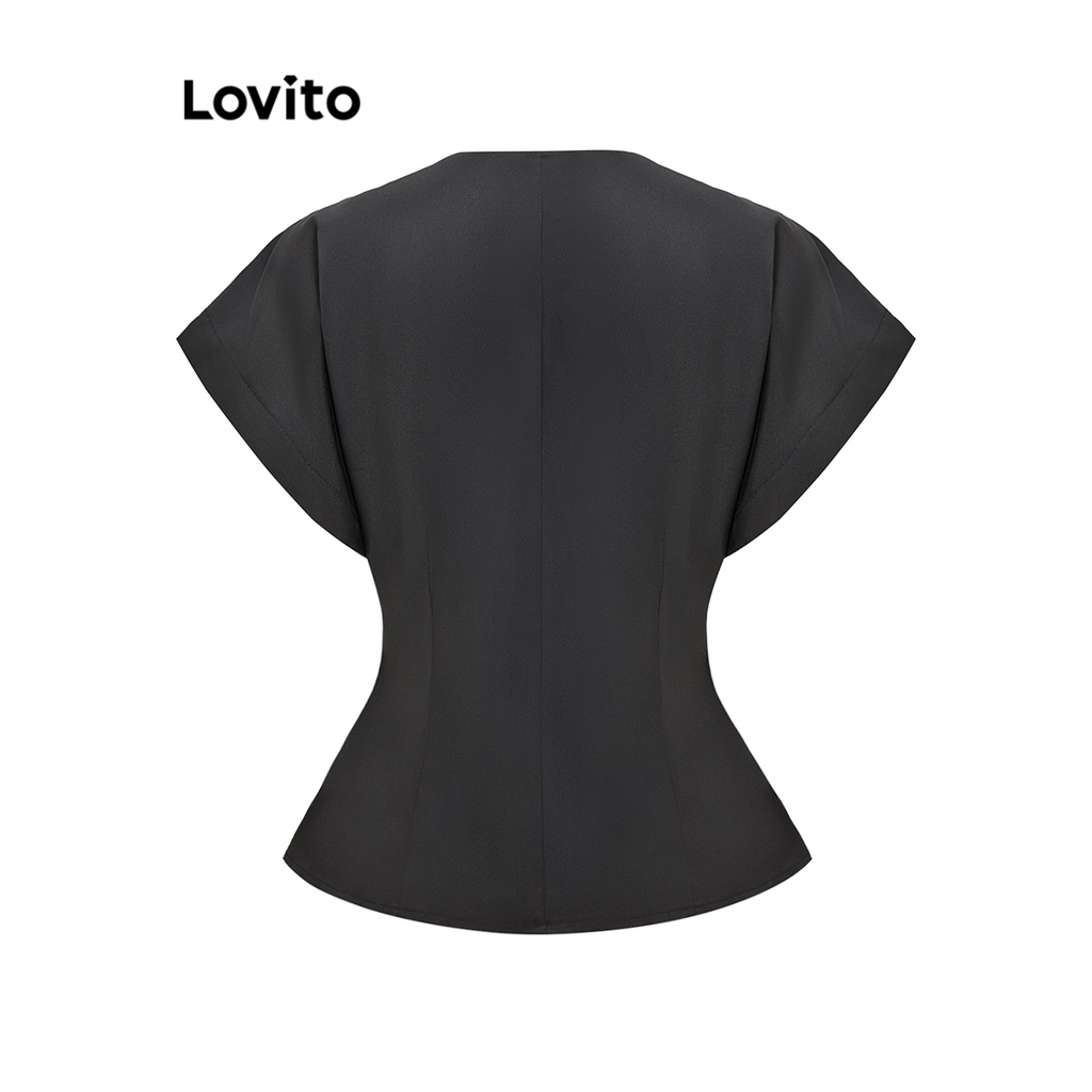 Lovito áo kiểu có cúc buộc dây màu trơn thường ngày cho Nữ lna17214 (Hoa mai)