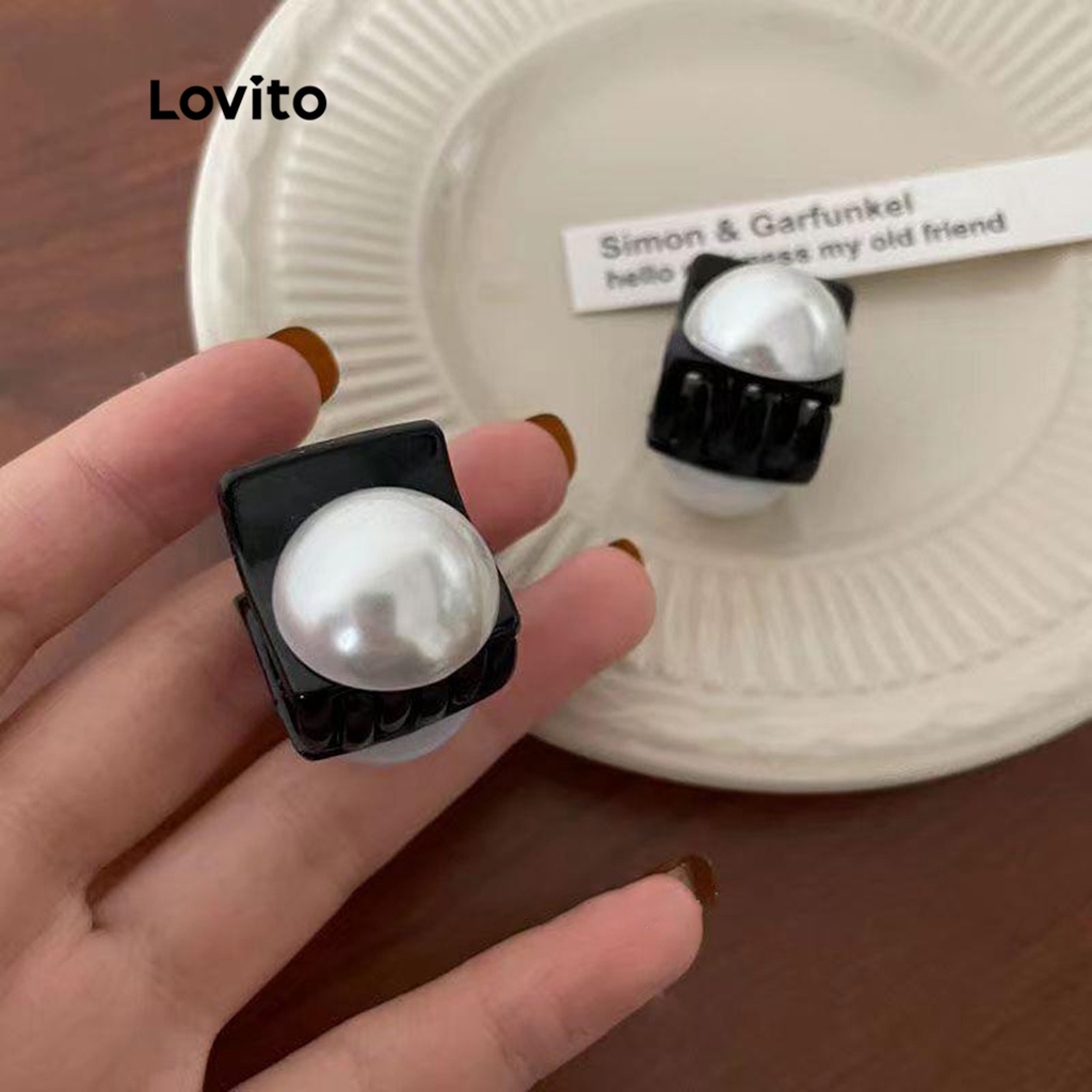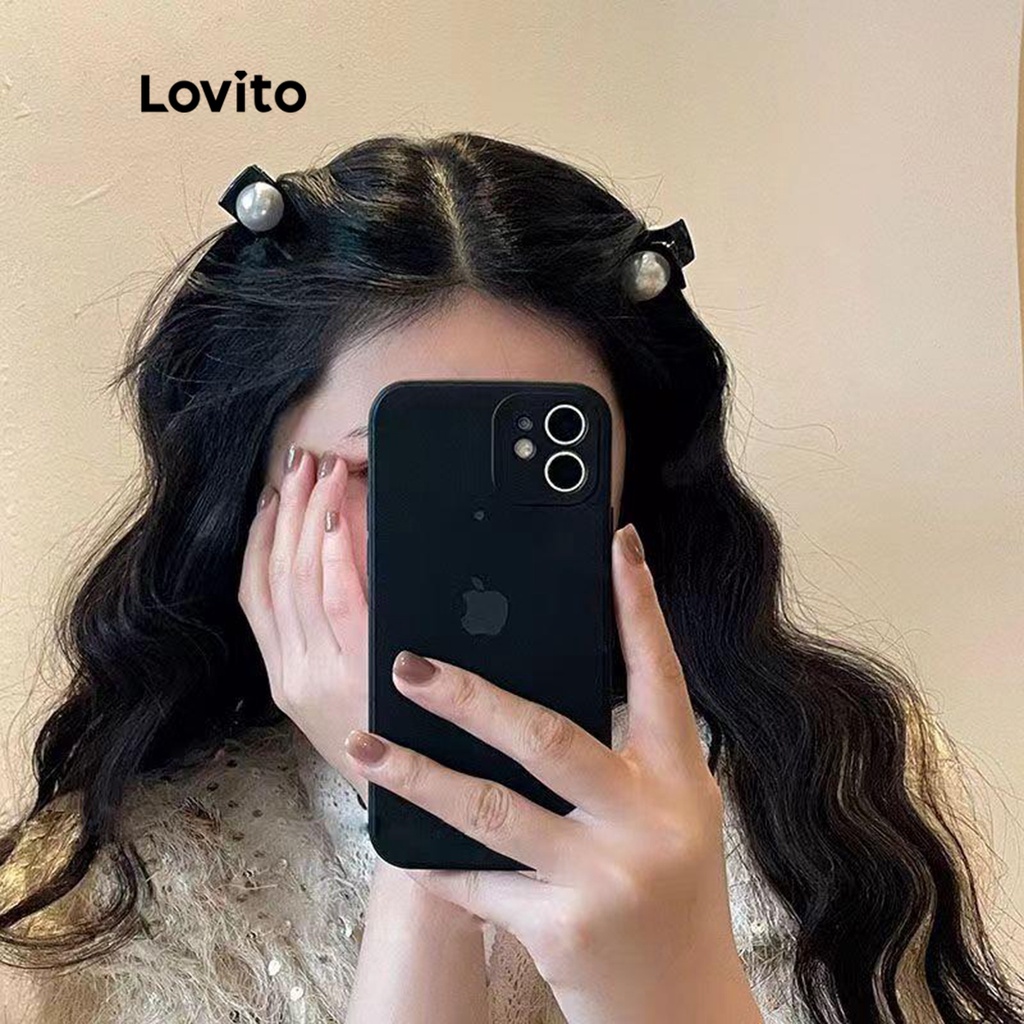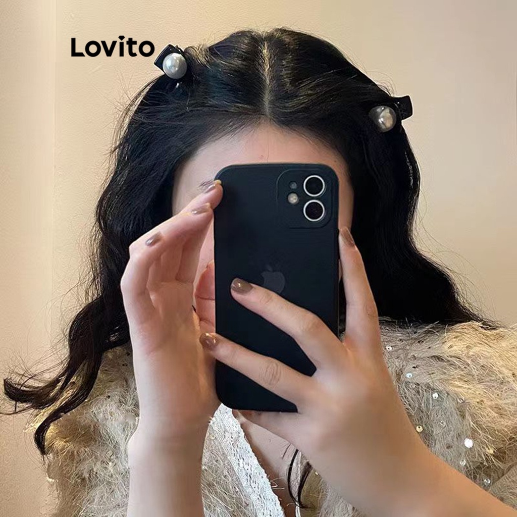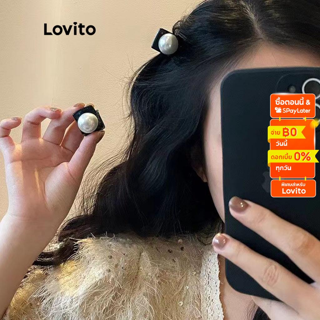 Lovito kẹp tóc nữ đính ngọc trai thắt nơ màu trơn thường ngày l63ad098 (Màu Đen)