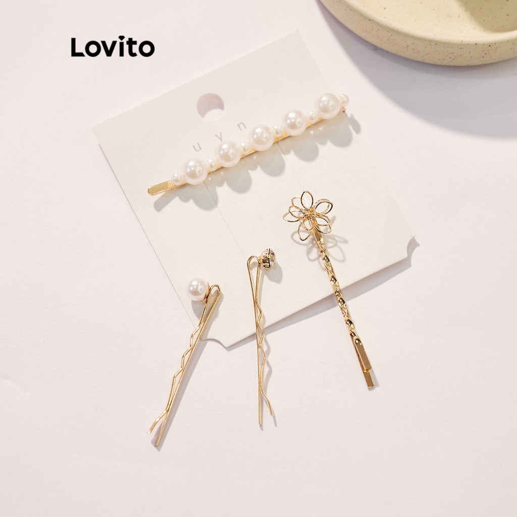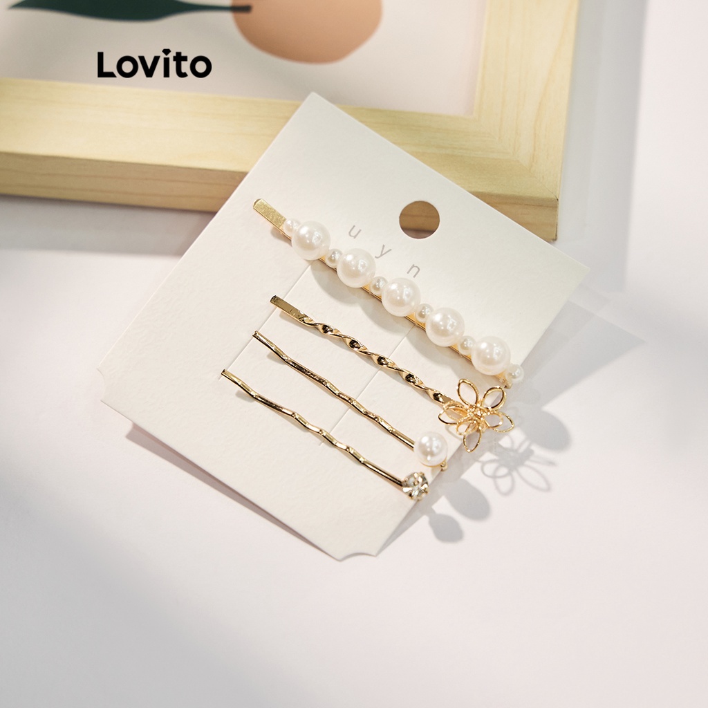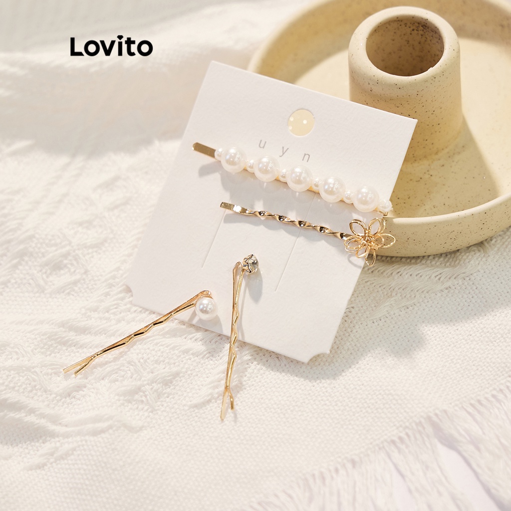 Lovito kẹp tóc thường ngày cho Nữ Cơ Bản lna09059 (Trắng nhạt/đỏ tía/Đen)