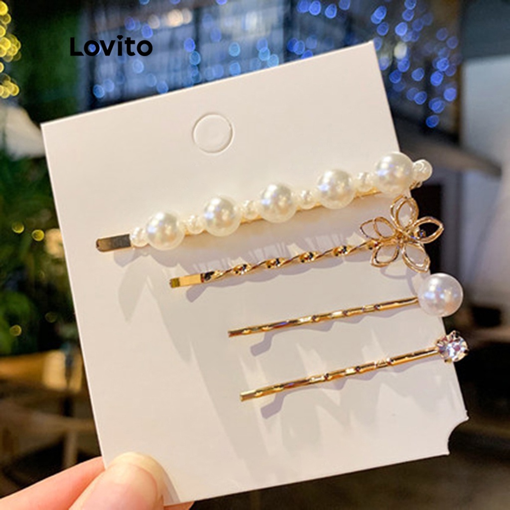 Lovito kẹp tóc giả ngọc trai cơ bản thường ngày cho Nữ lna09070 (Màu Đen)
