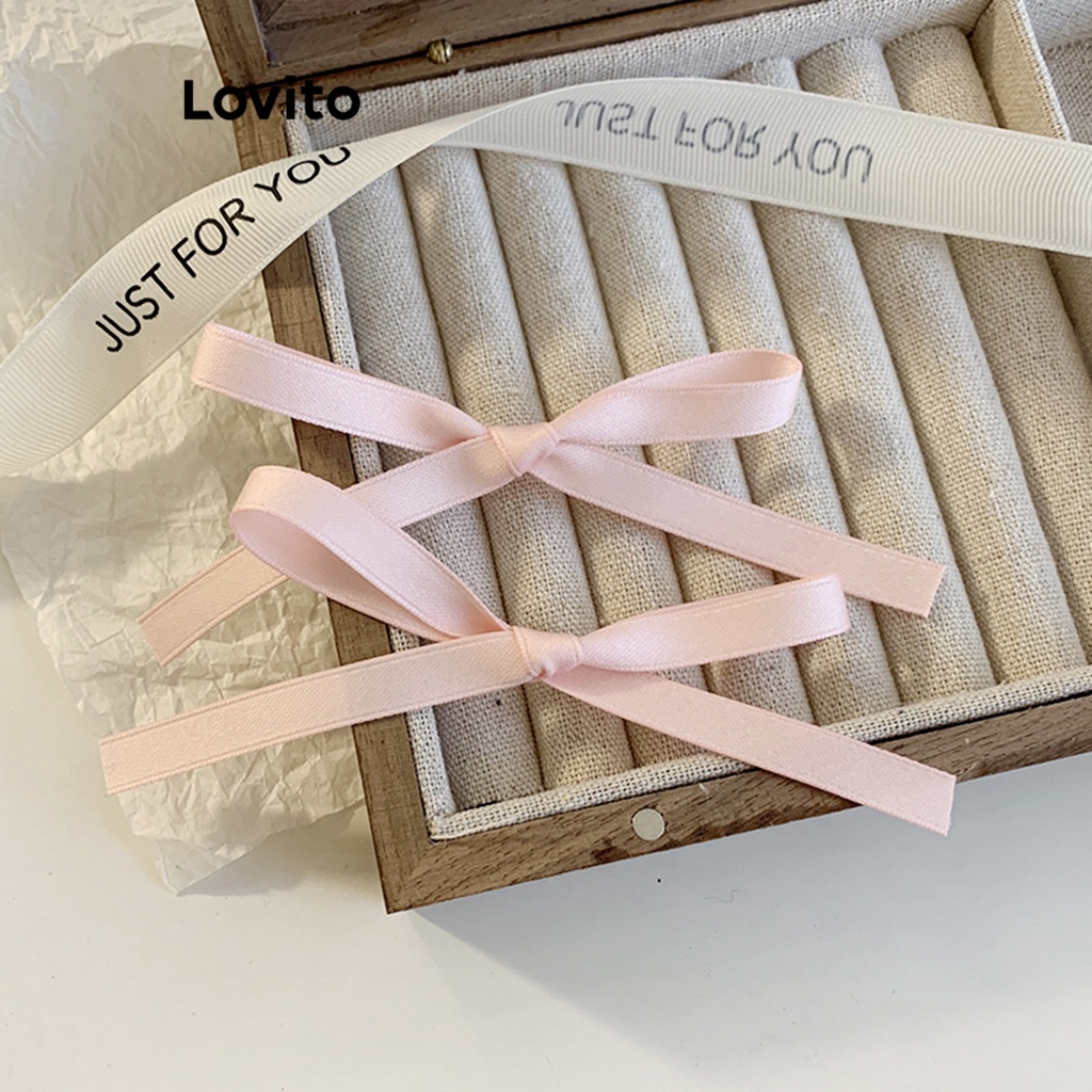 Lovito l60ad079 2 chiếc kẹp tóc màu trơn thắt nơ dễ thương (Trắng/Hồng)