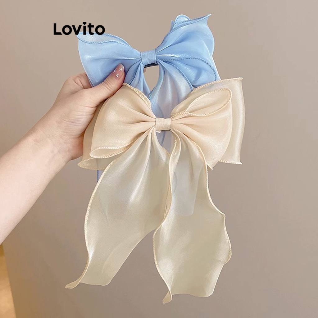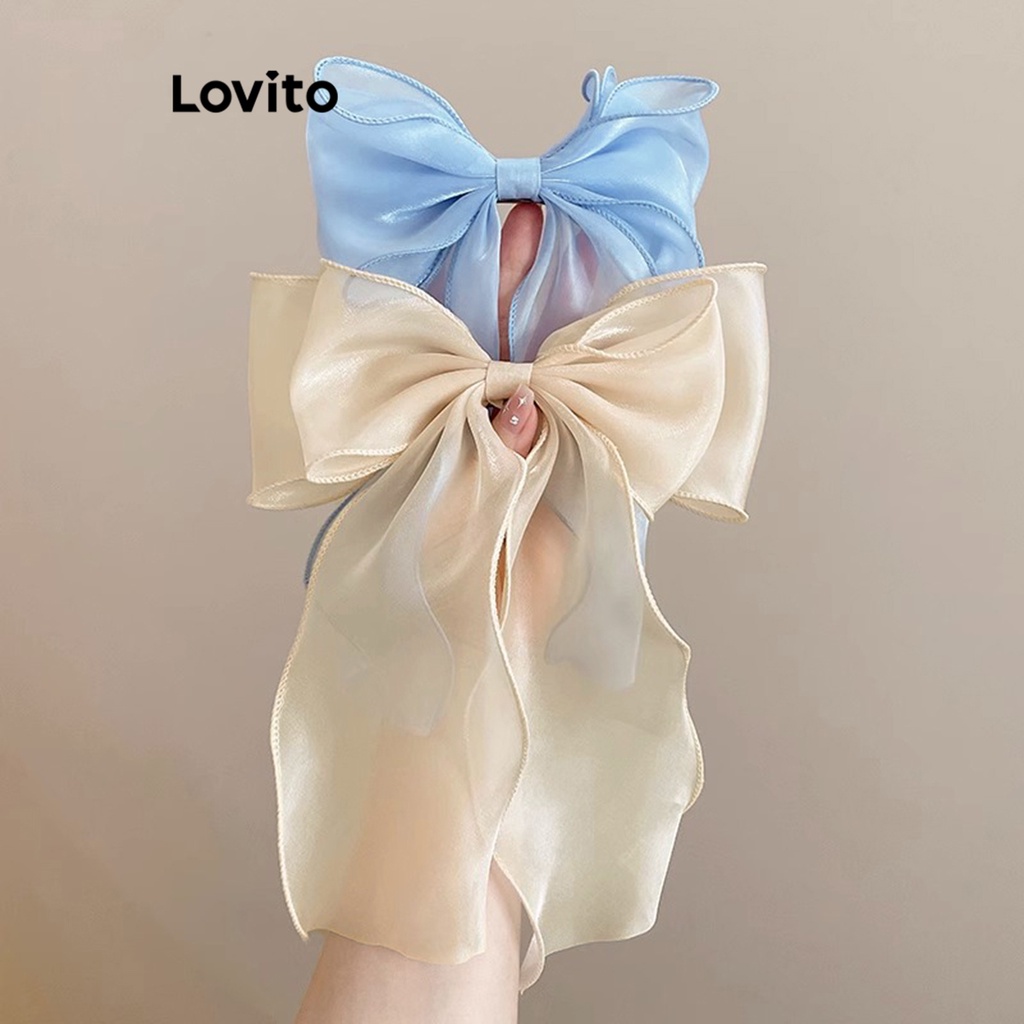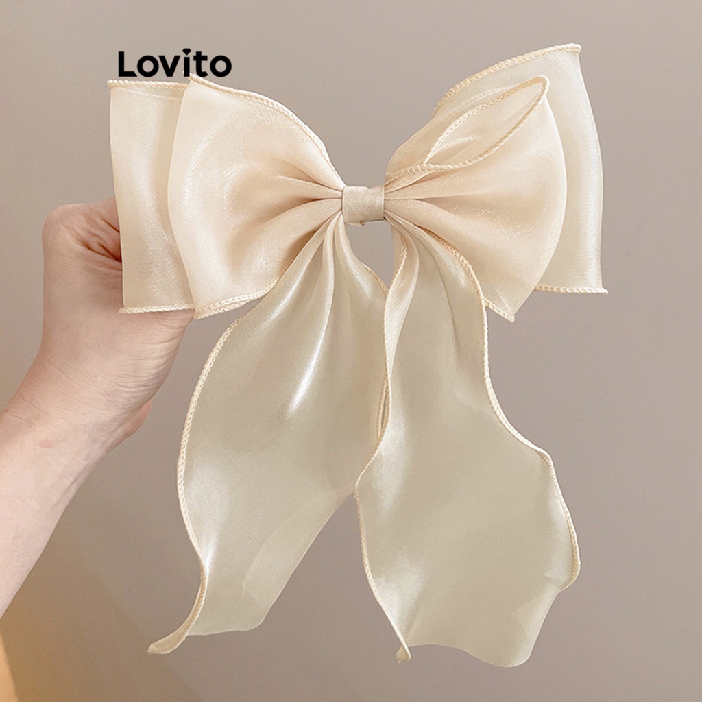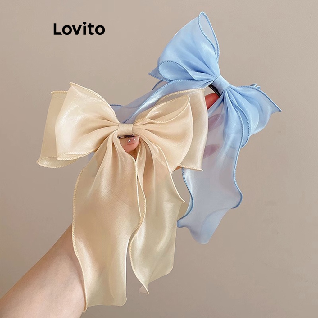 Lovito kẹp tóc màu trơn thắt nơ dễ thương cho nữ l60ad080 (Trắng/Hồng/Đen)