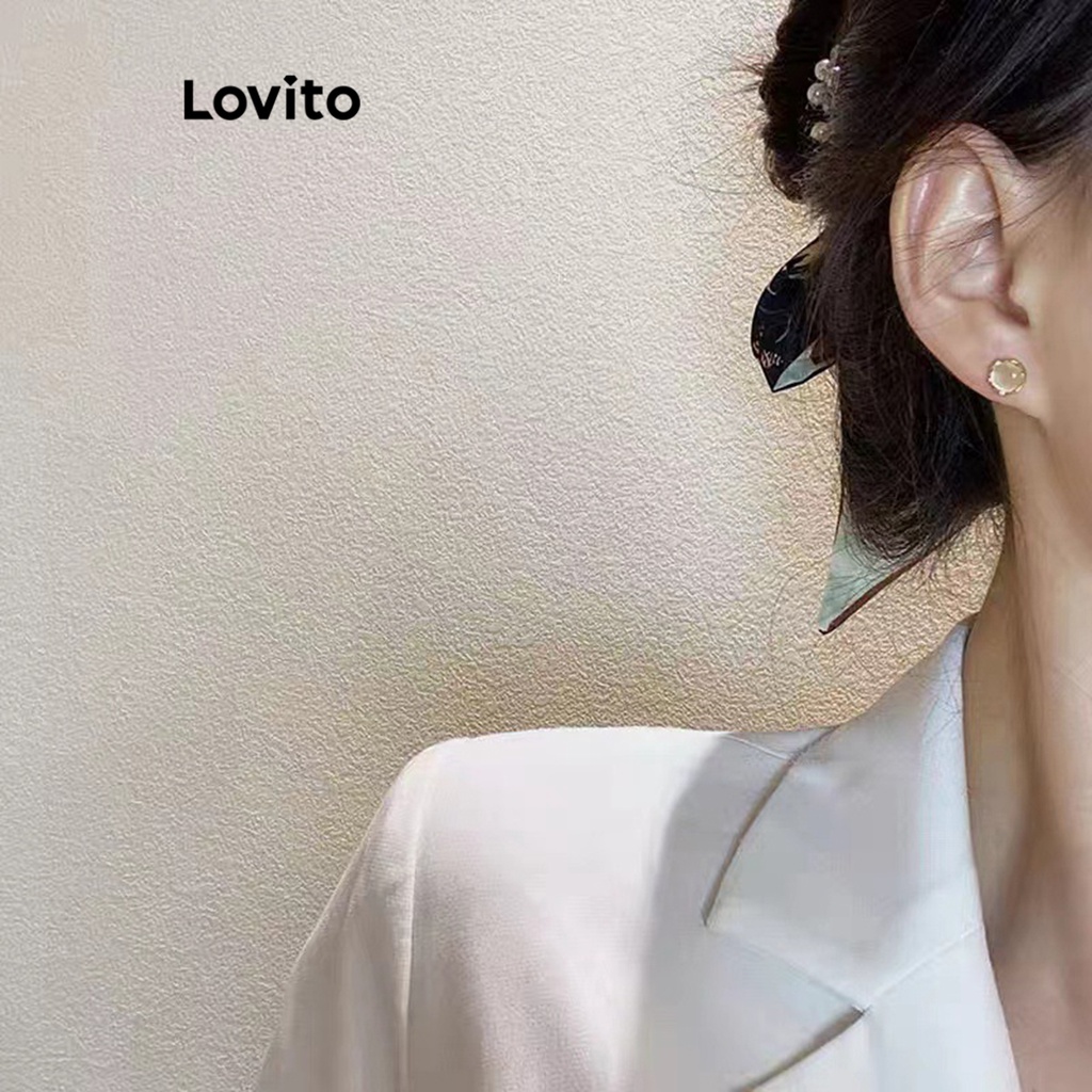 Lovito bông tai kim cương giả màu trơn thường ngày cho Nữ l60ad176 (màu vàng kim)