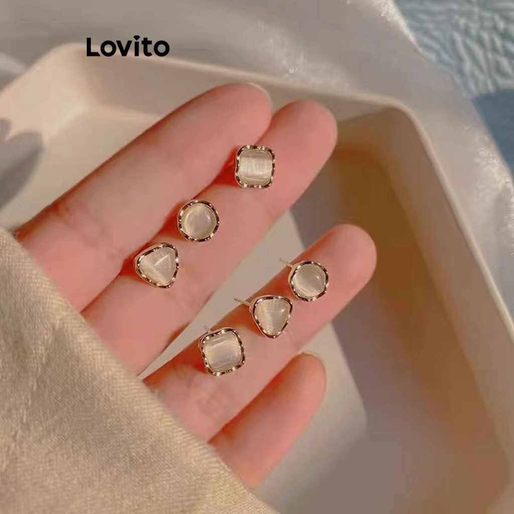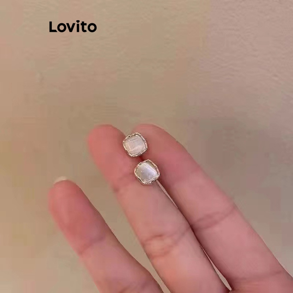 Lovito Bông tai ngọc trai hạt cườm hình học thường ngày cho Nữ l60ad025 (màu vàng kim)