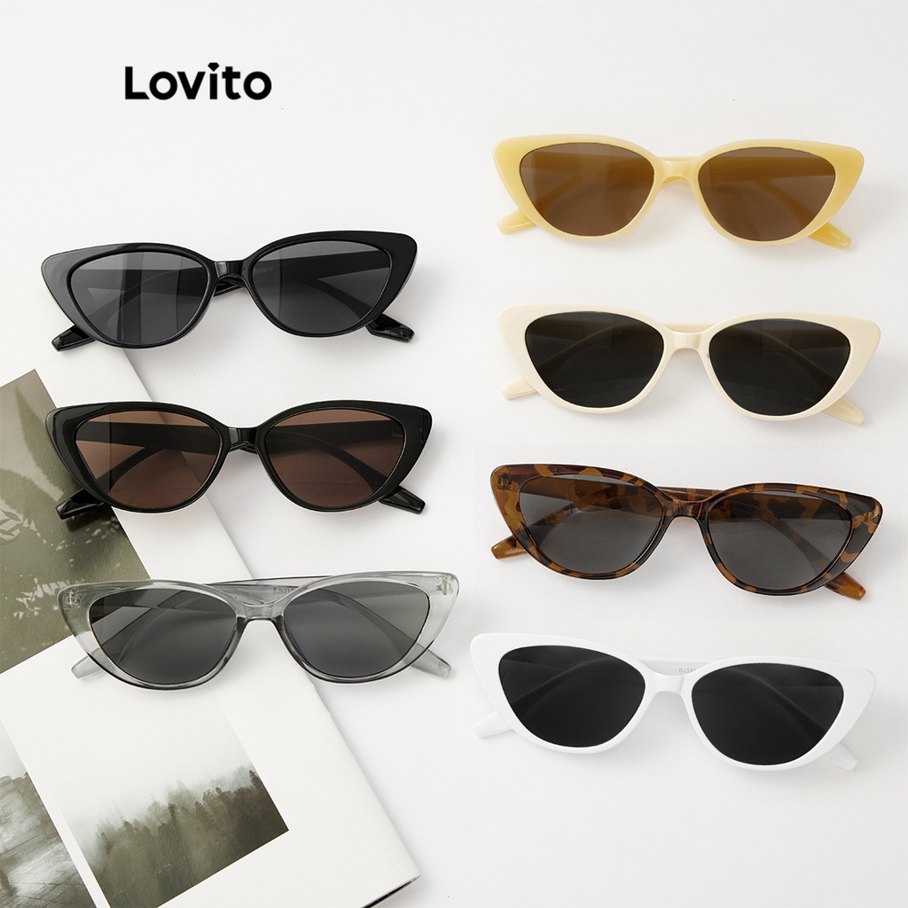 Lovito Kính râm Mắt mèo trơn gọng màu nâu thường ngày cho Nữ l50ad190 (Nhiều màu)
