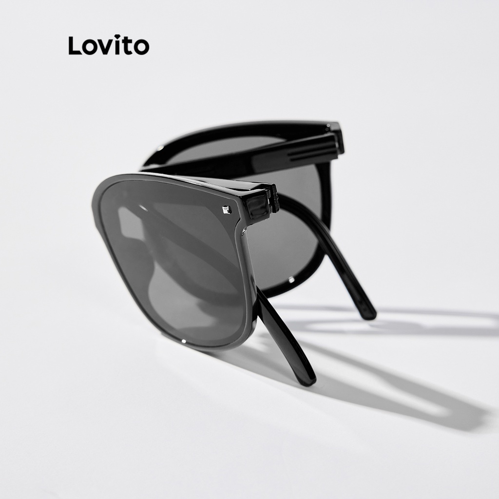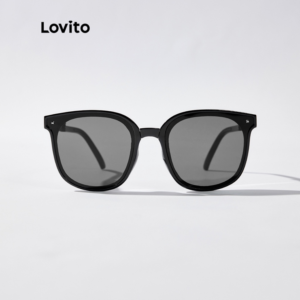 Lovito Kính râm trơn thường ngày cổ điển phi giới tính Kính râm Full rim l34ad057 (Màu Đen)