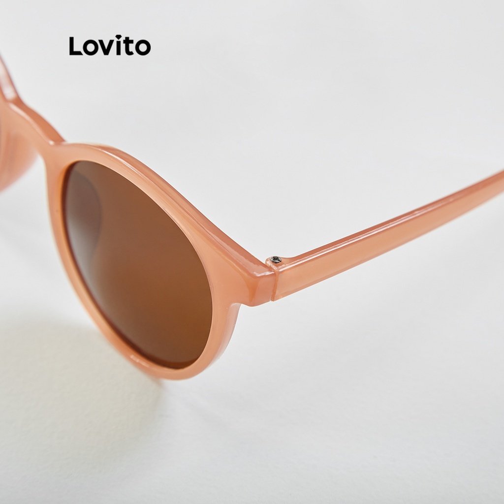 Lovito Kính râm Full rim kèm kính mắt màu trơn phong cách thường ngày l34ad061 (Màu Nâu)
