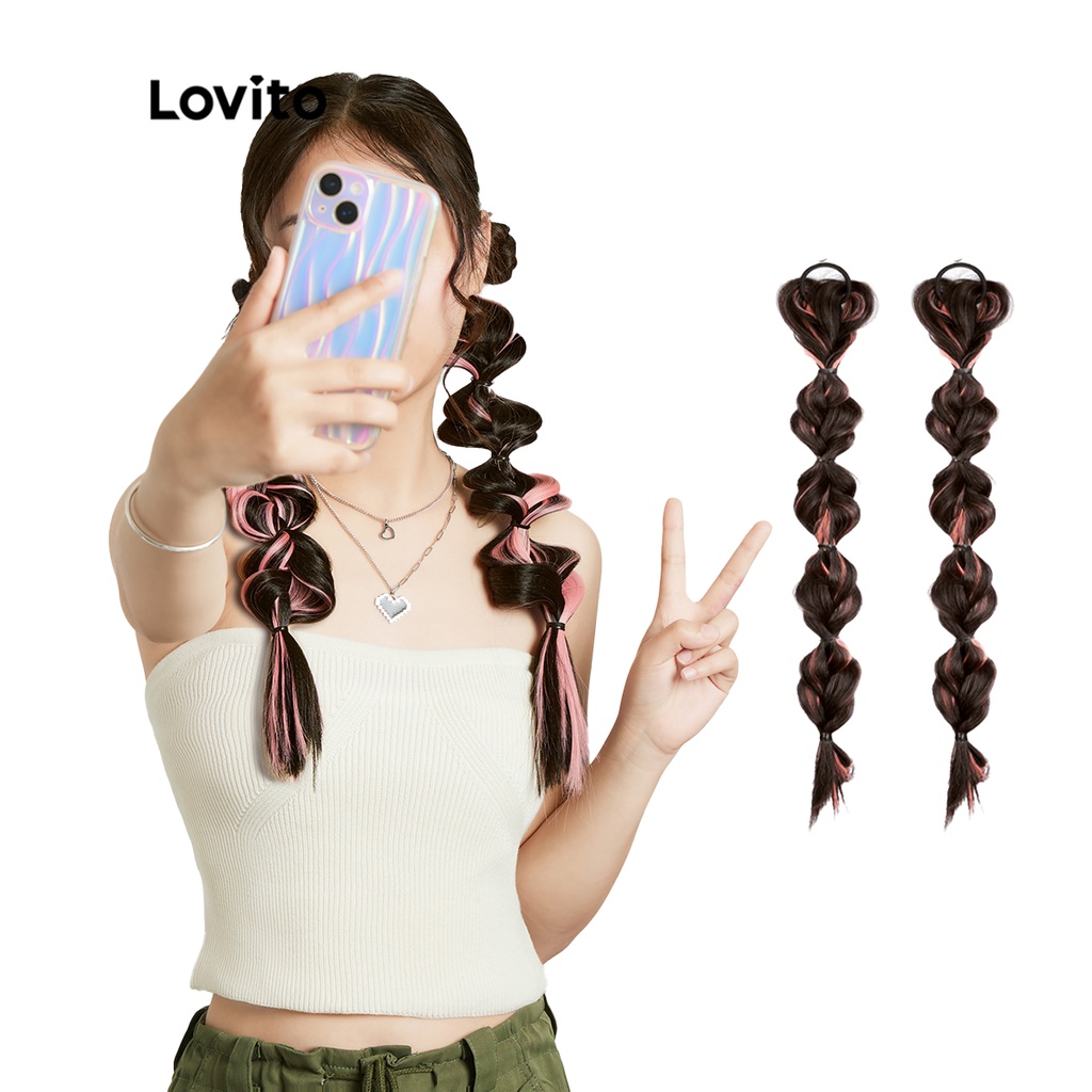 Lovito Tóc Giả thường ngày tiện lợi màu trơn cho nữ l57ad171 (Nâu/Nâu Đỏ/Đen)