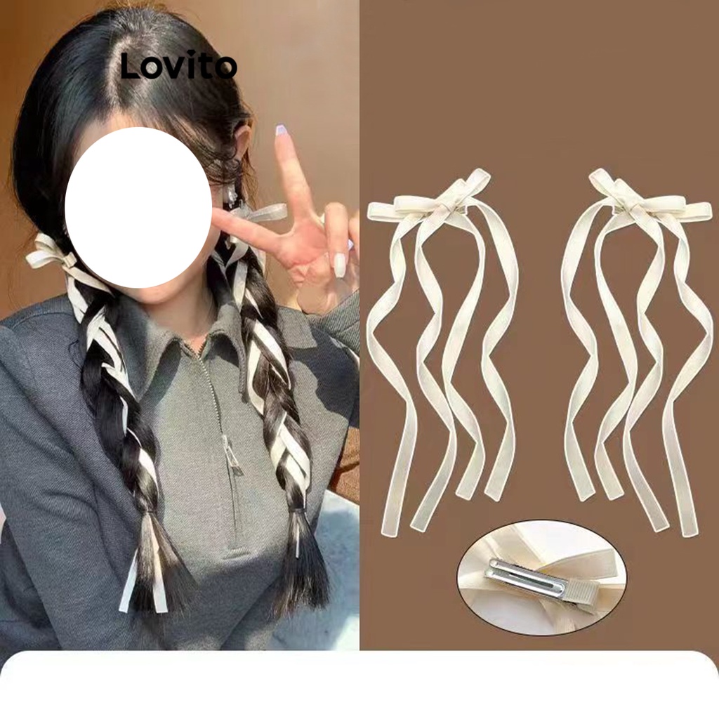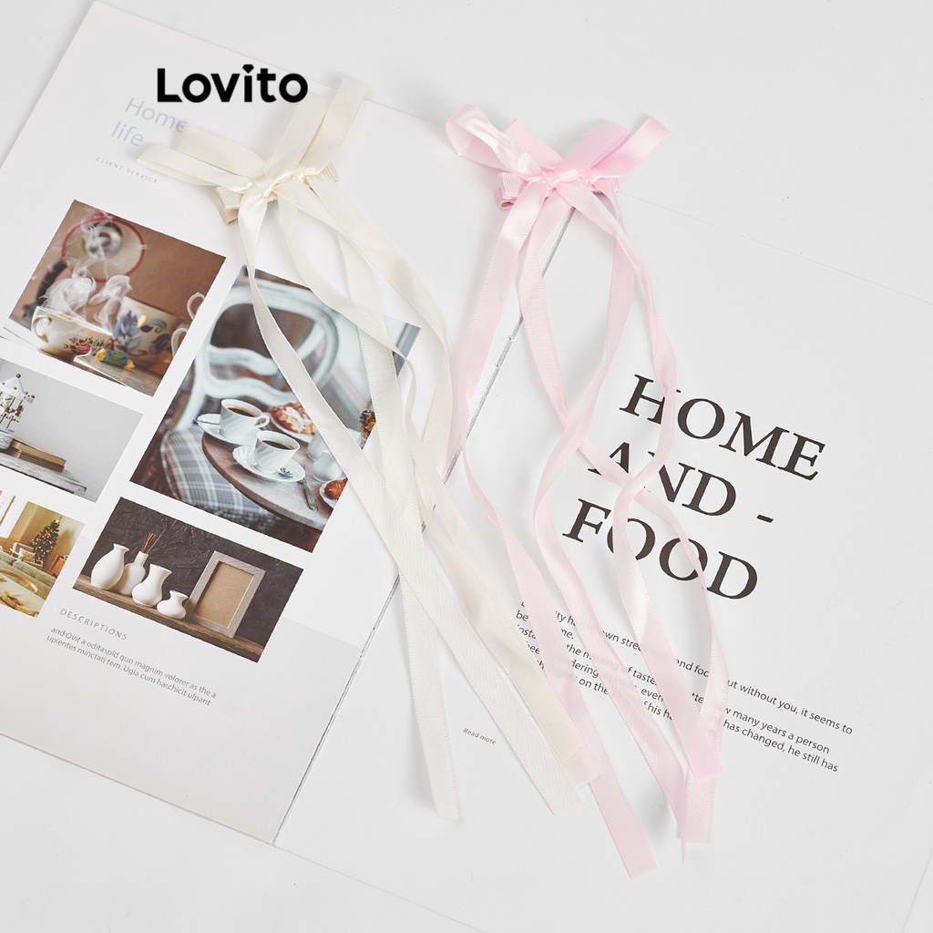 Lovito kẹp tóc màu trơn thắt nơ dễ thương cho nữ l60ad080 (Trắng/Hồng/Đen)