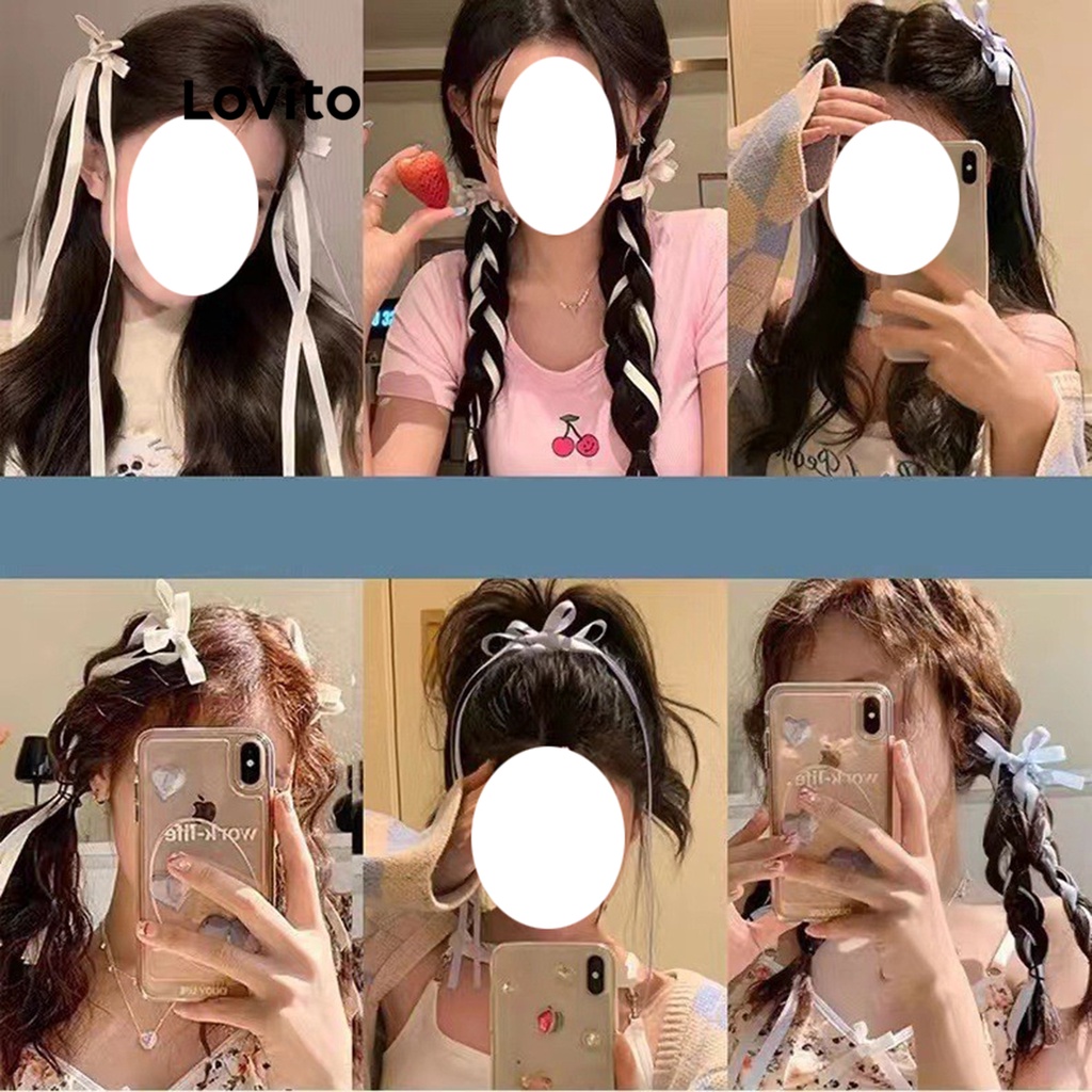 Lovito Kẹp tóc nơ lưới màu dễ thương cho nữ Trường học l57ad007 (Xanh dương/Trắng nhạt)
