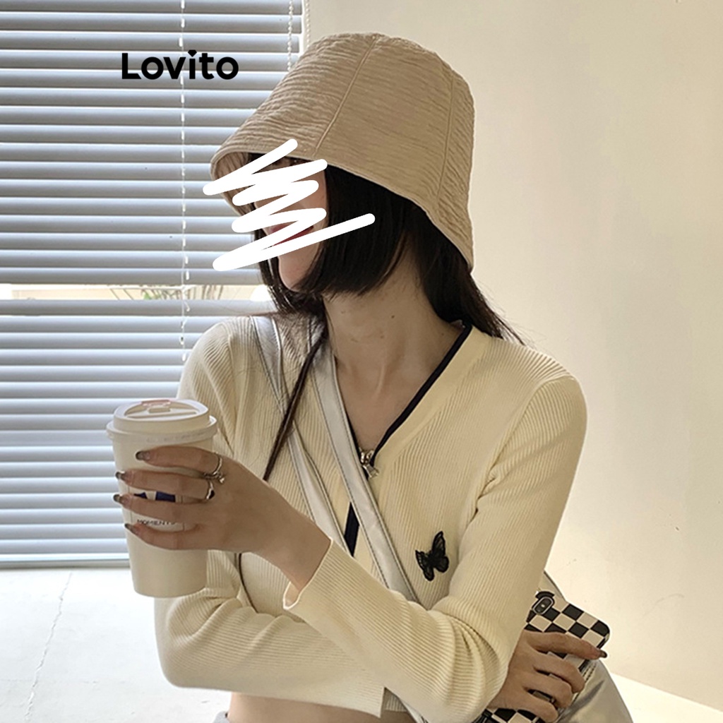 Lovito Mũ Chống Nắng in màu trơn thường ngày chống tia UV rộng vành cho nữ lfa23047