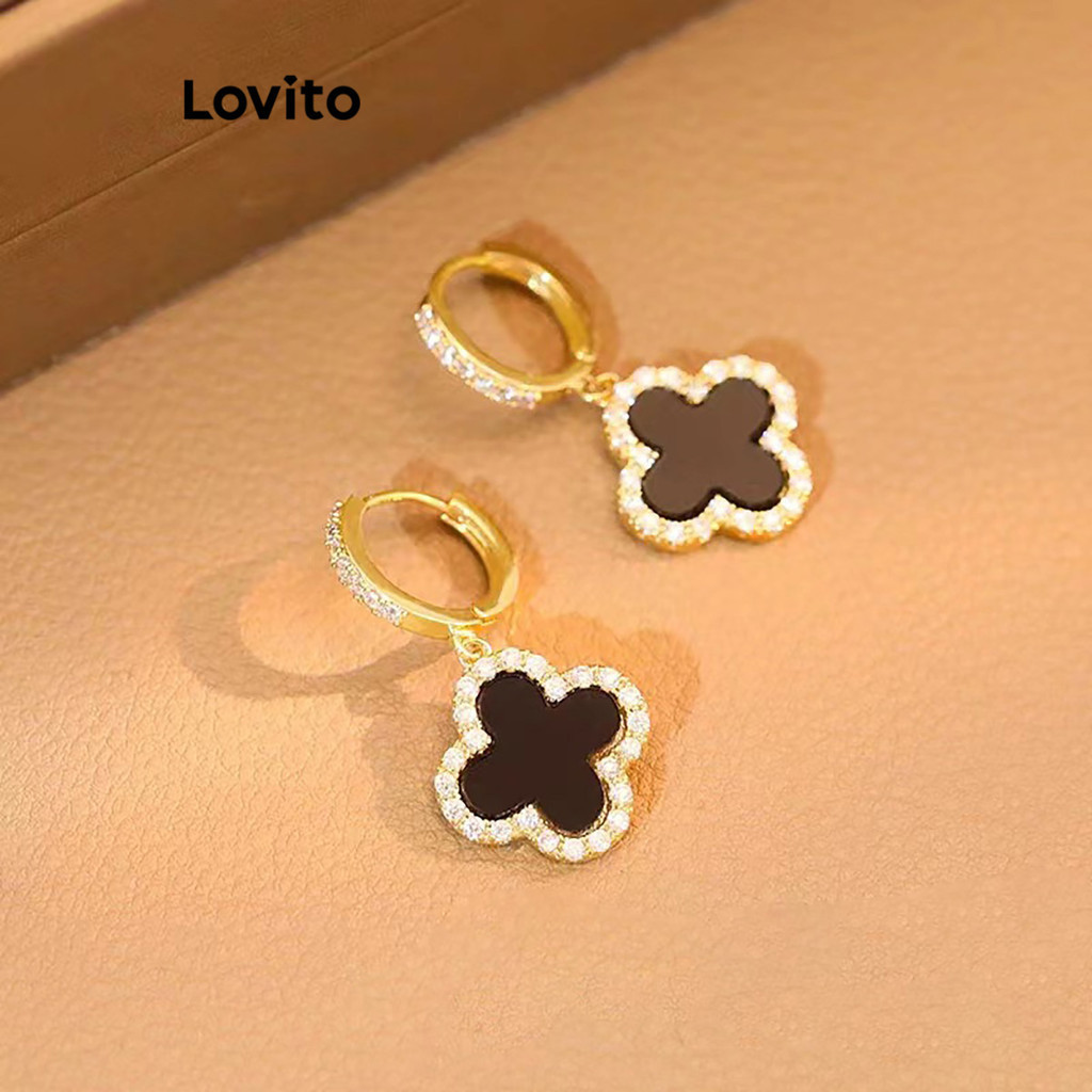 Lovito bông tai kim cương giả màu trơn thường ngày cho Nữ l60ad176 (màu vàng kim)
