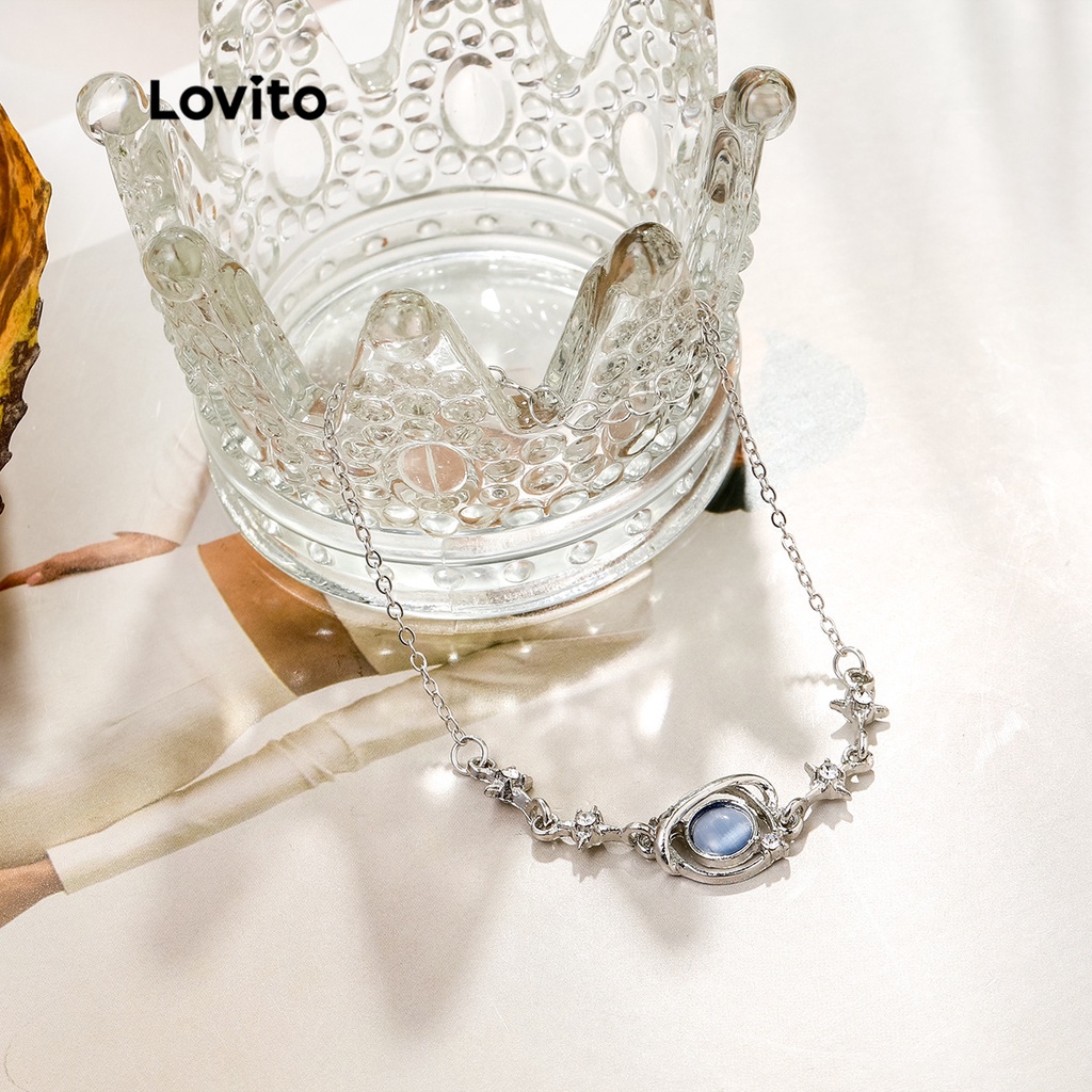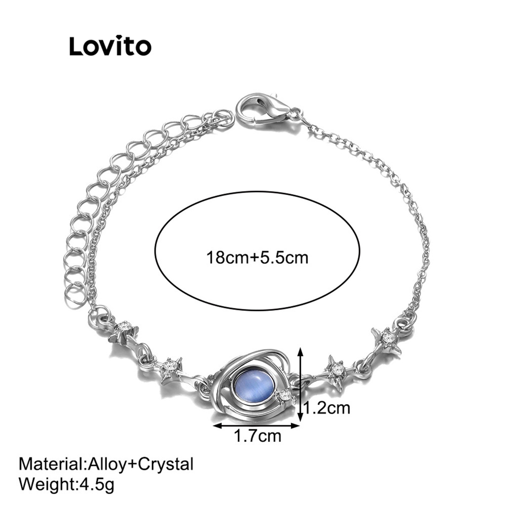Lovito Vòng tay cặp đôi lãng mạn Vòng tay lãng mạn đính đá Zircon hình nơ mặt trăng hoa anh đào cho nữ lfa12539