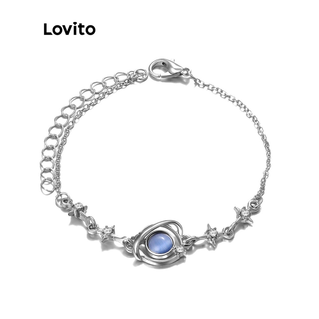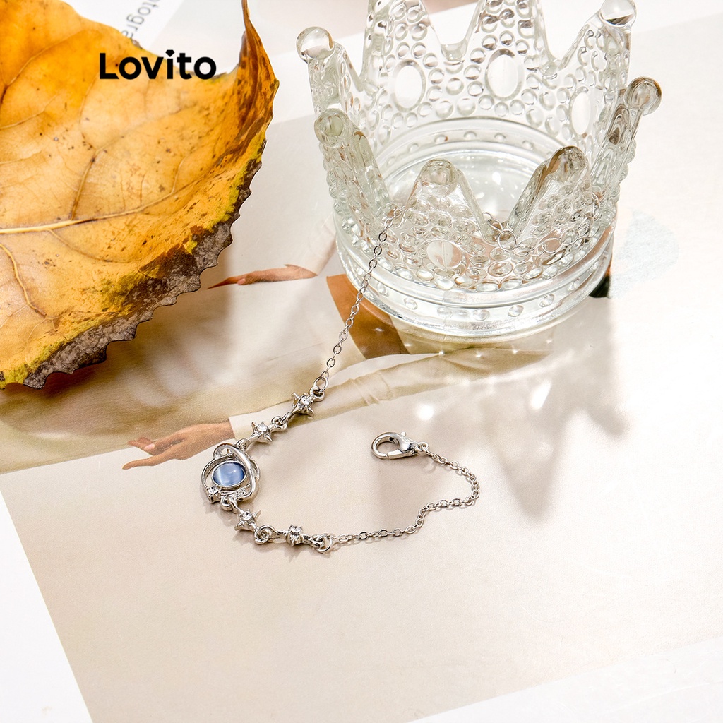 Lovito Vòng Tay Charm Đính Đá Màu Trơn thường ngày cho Nữ lfa03231 (màu bạc)