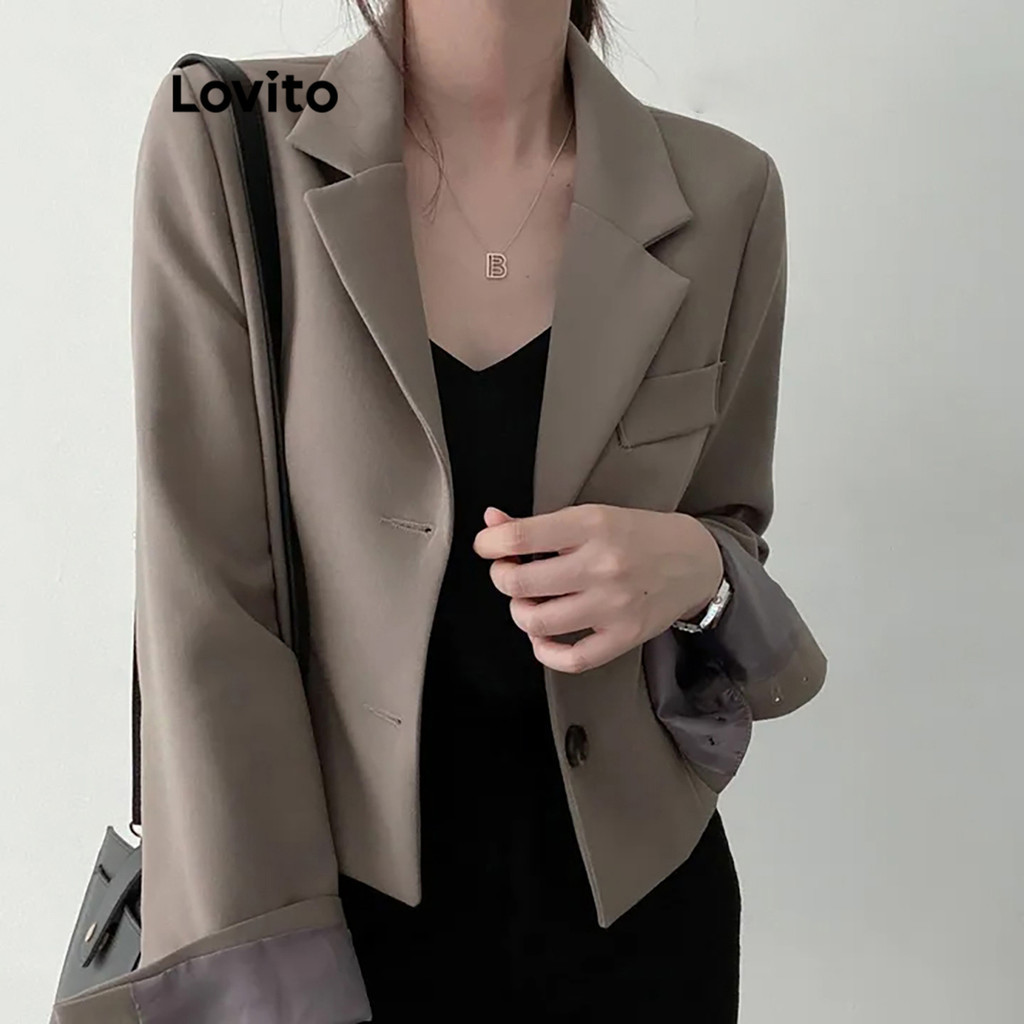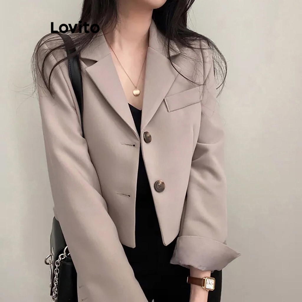 Lovito Áo Blazer trơn có cúc cơ bản thanh lịch cho nữ lbe02046 (Màu Kaki)