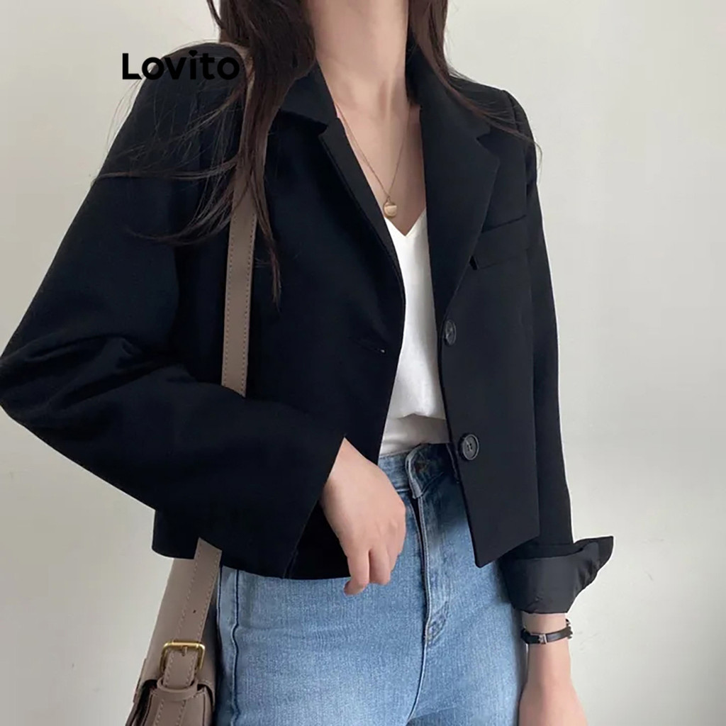 Lovito Áo Blazer Nữ Có Nút Lông giả phía trước màu trơn thường ngày lna39043 (Nhiều màu)