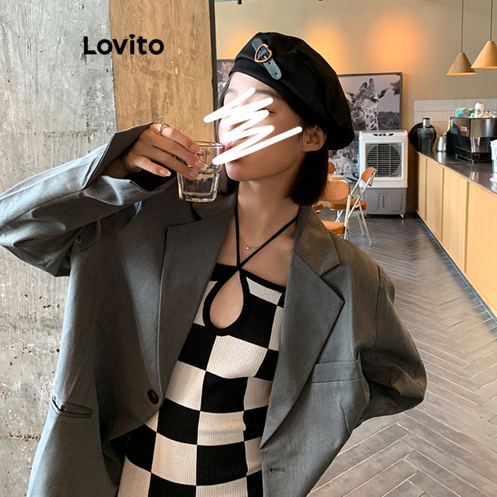 Lovito Mũ Nữ Cơ Bản màu trơn phong cách thường ngày lfa05416 (Xám/Nâu/Đen)