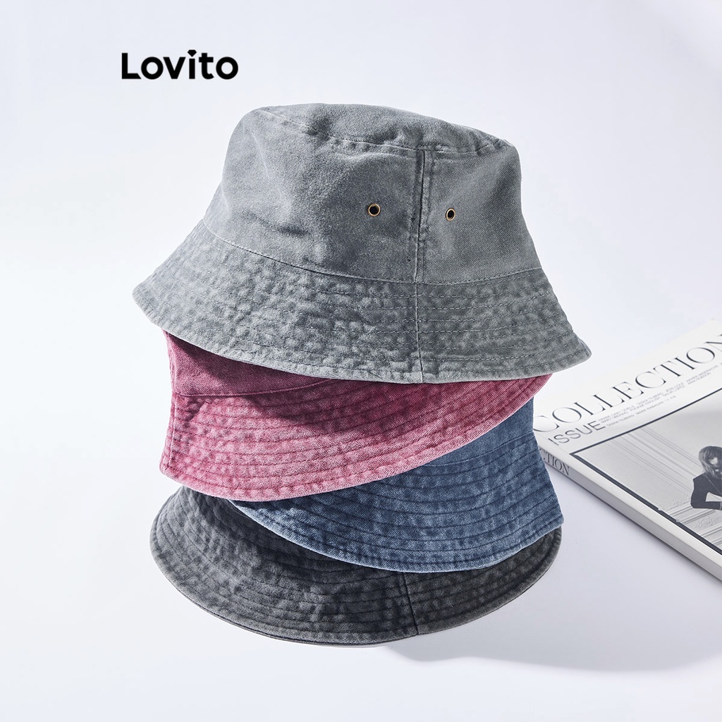 Lovito Mũ Chống Nắng in màu trơn thường ngày chống tia UV rộng vành cho nữ lfa23047