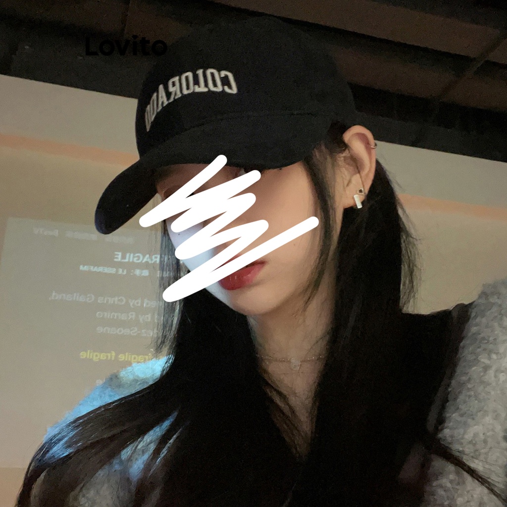 Lovito Mũ nữ thường ngày thêu chữ thông dụng thời trang Hàn Quốc lfa22346