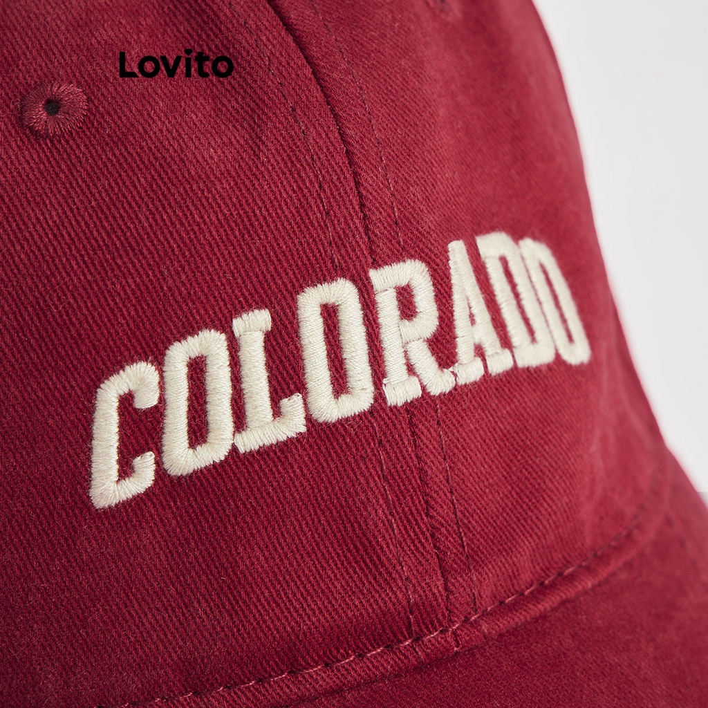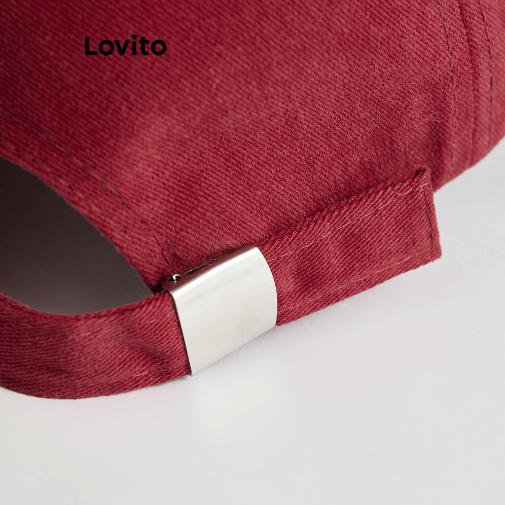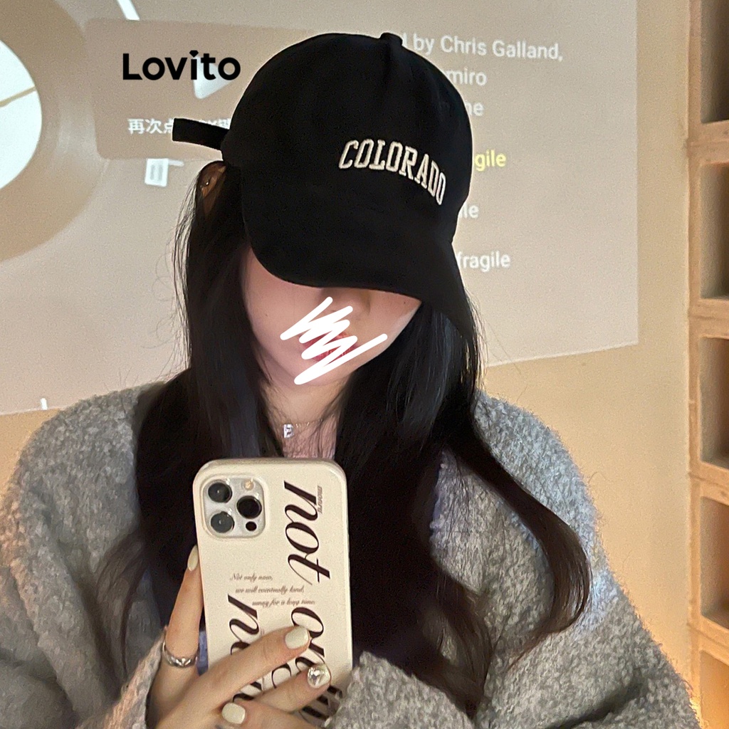 Lovito lfa08598 Mũ nữ kiểu Mỹ retro thêu chữ phong cách thường ngày màu khối (Nâu/trắng/hồng/xanh lá/Đen)