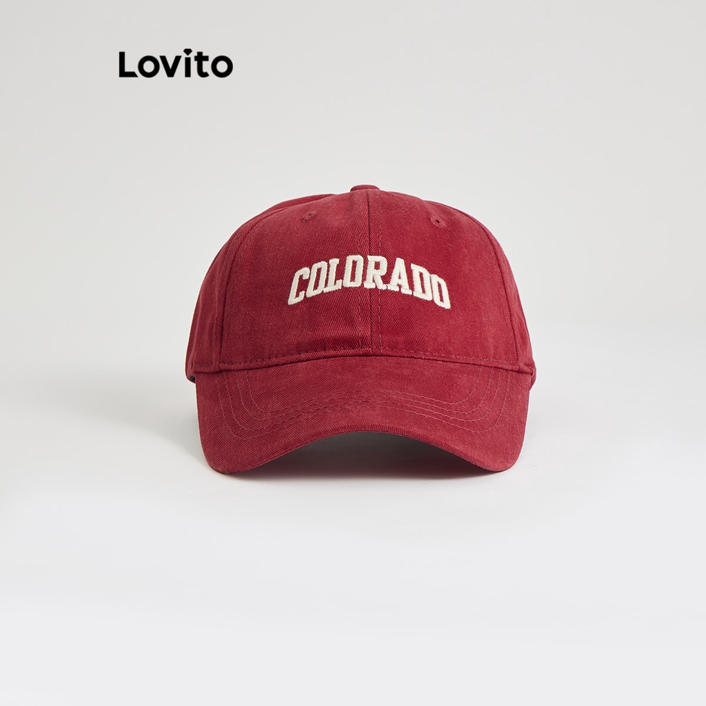 Lovito Mũ nữ vải thêu chữ thường ngày l63ad261 (Xám đậm/đỏ/xanh lá/xanh hải quân)