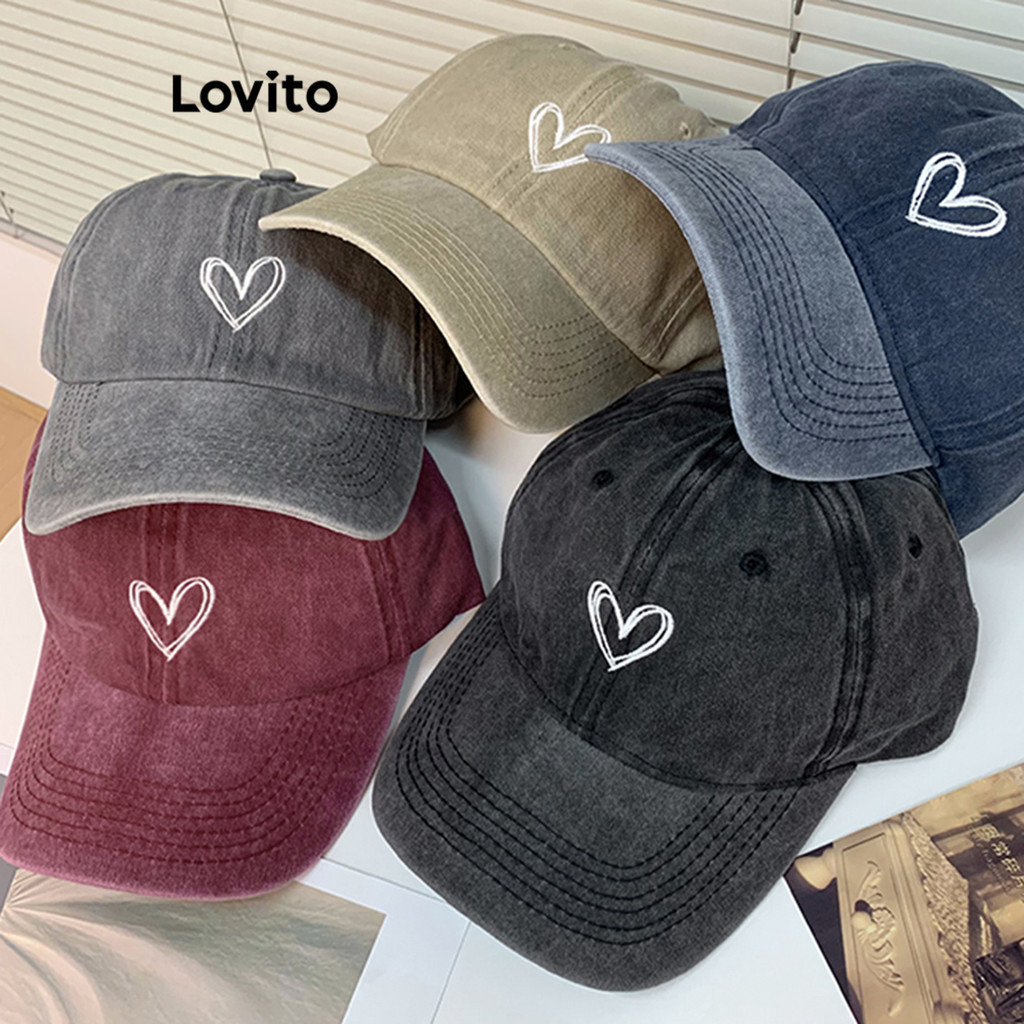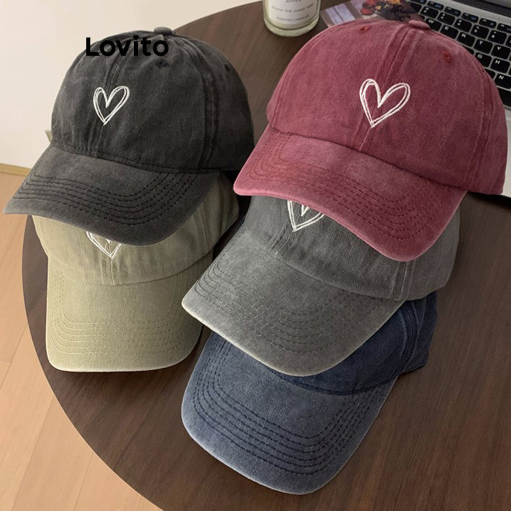 Lovito Mũ nữ thường ngày thêu chữ thông dụng thời trang Hàn Quốc lfa22346