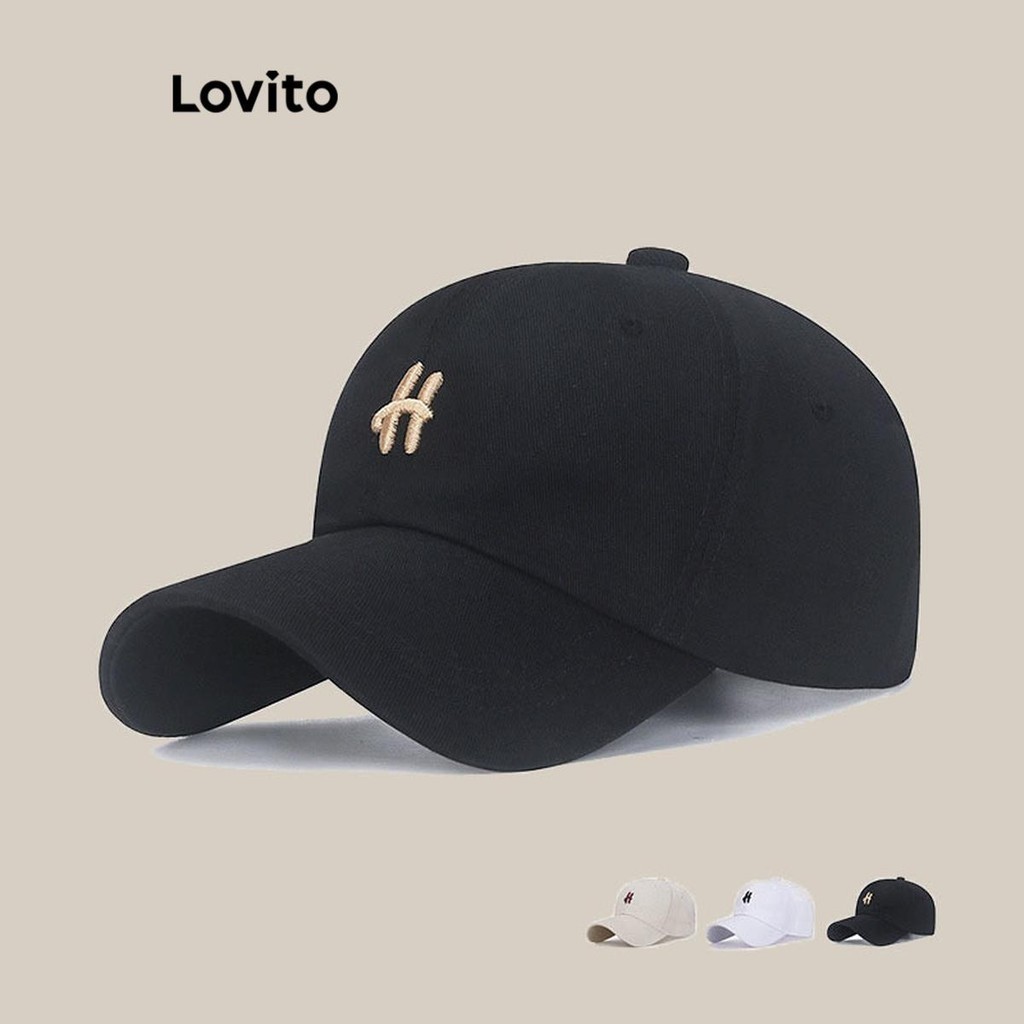 Lovito lfa08598 Mũ nữ kiểu Mỹ retro thêu chữ phong cách thường ngày màu khối (Nâu/trắng/hồng/xanh lá/Đen)