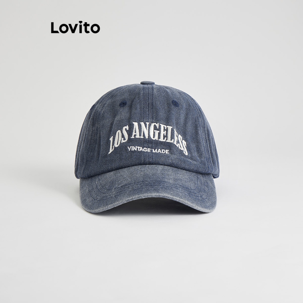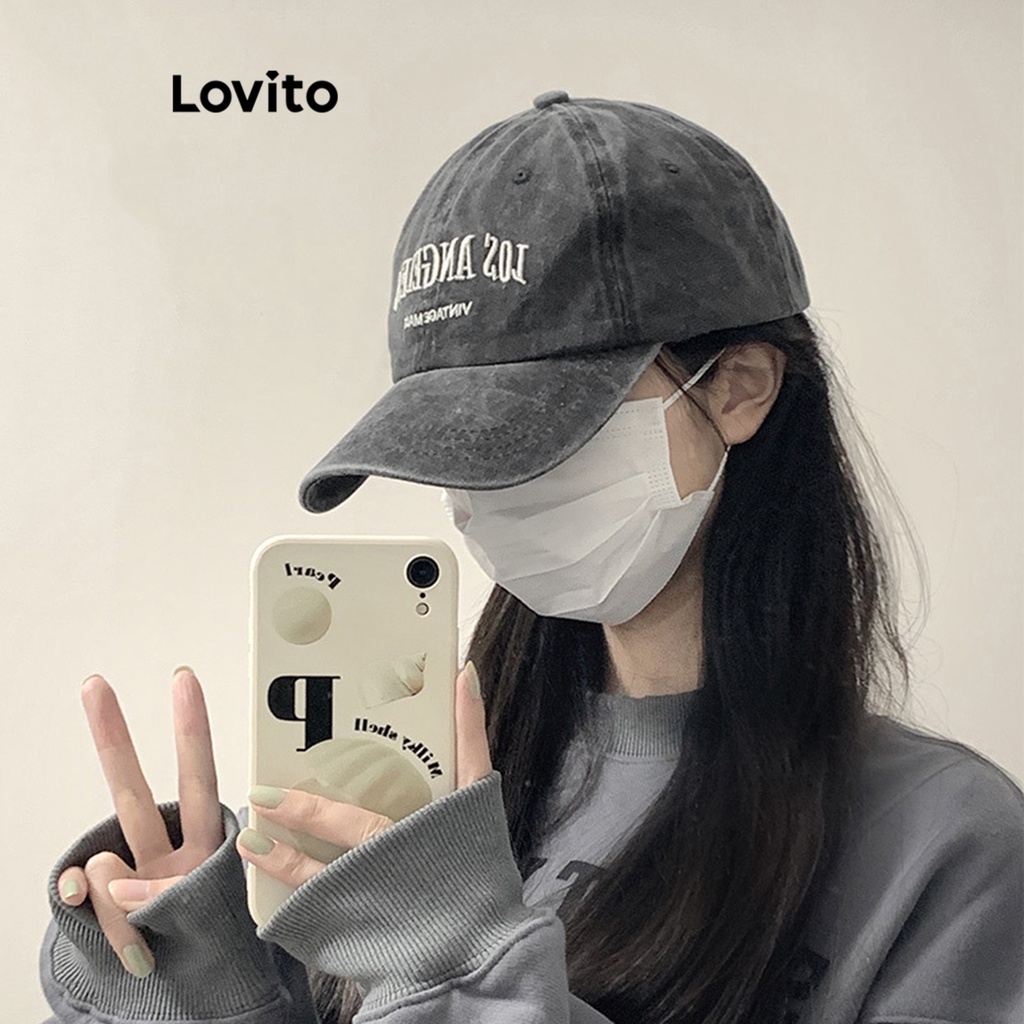 Lovito Mũ nữ thường ngày thêu chữ thông dụng thời trang Hàn Quốc lfa22346