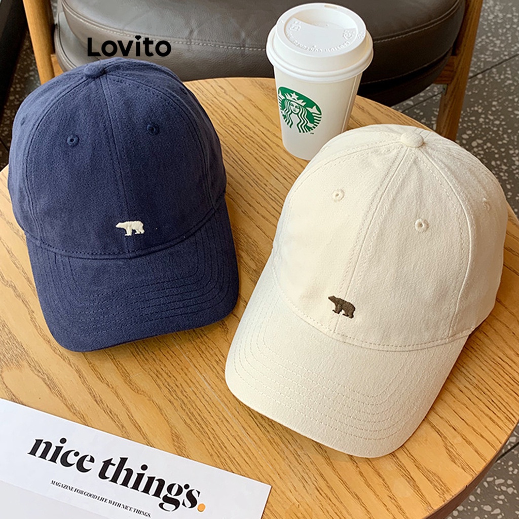 Lovito Mũ nữ thường ngày thêu chữ thông dụng thời trang Hàn Quốc lfa22346
