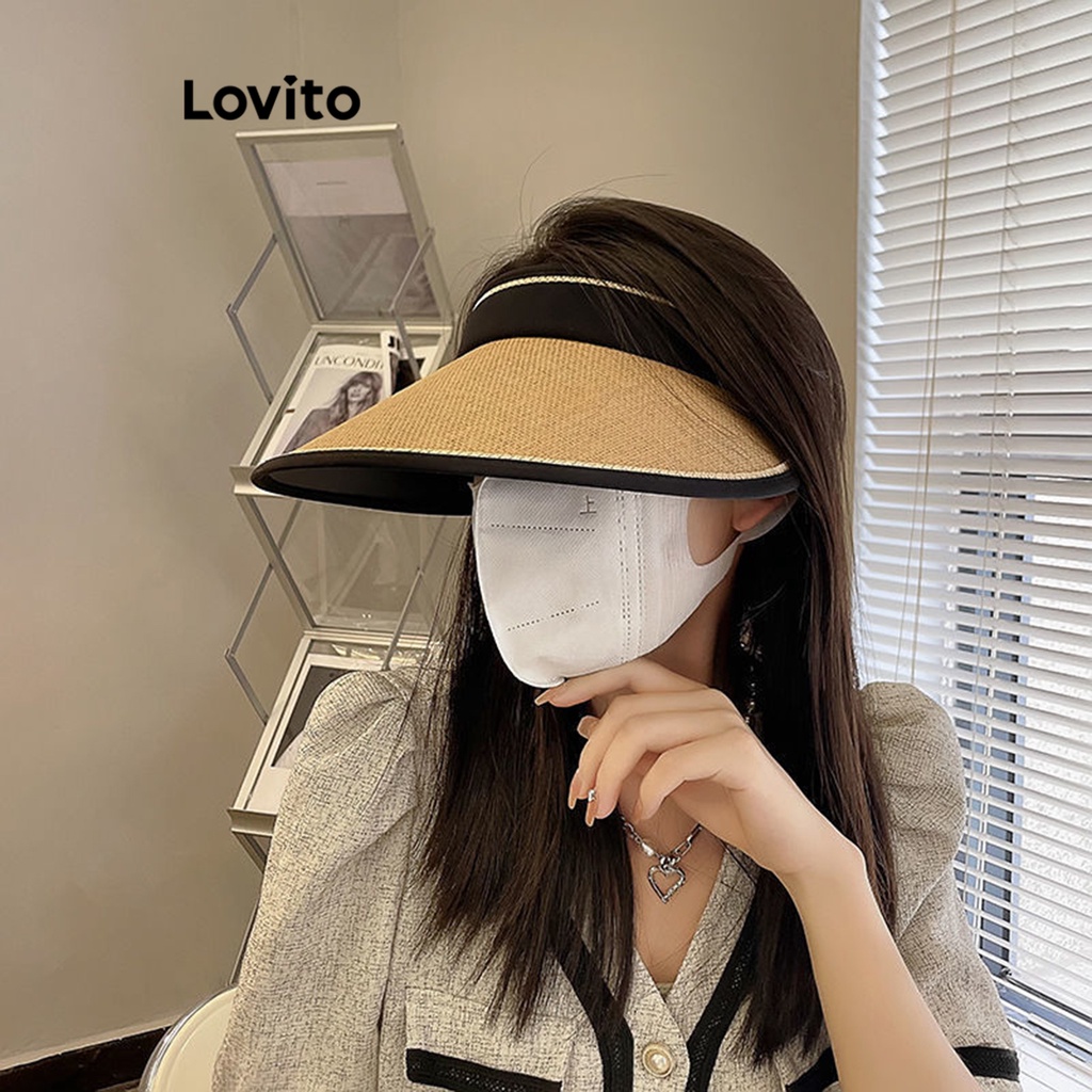 Lovito Mũ Chống Nắng in màu trơn thường ngày chống tia UV rộng vành cho nữ lfa23047