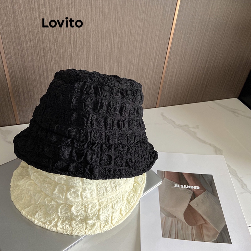 Lovito Mũ Chống Nắng in màu trơn thường ngày chống tia UV rộng vành cho nữ lfa23047
