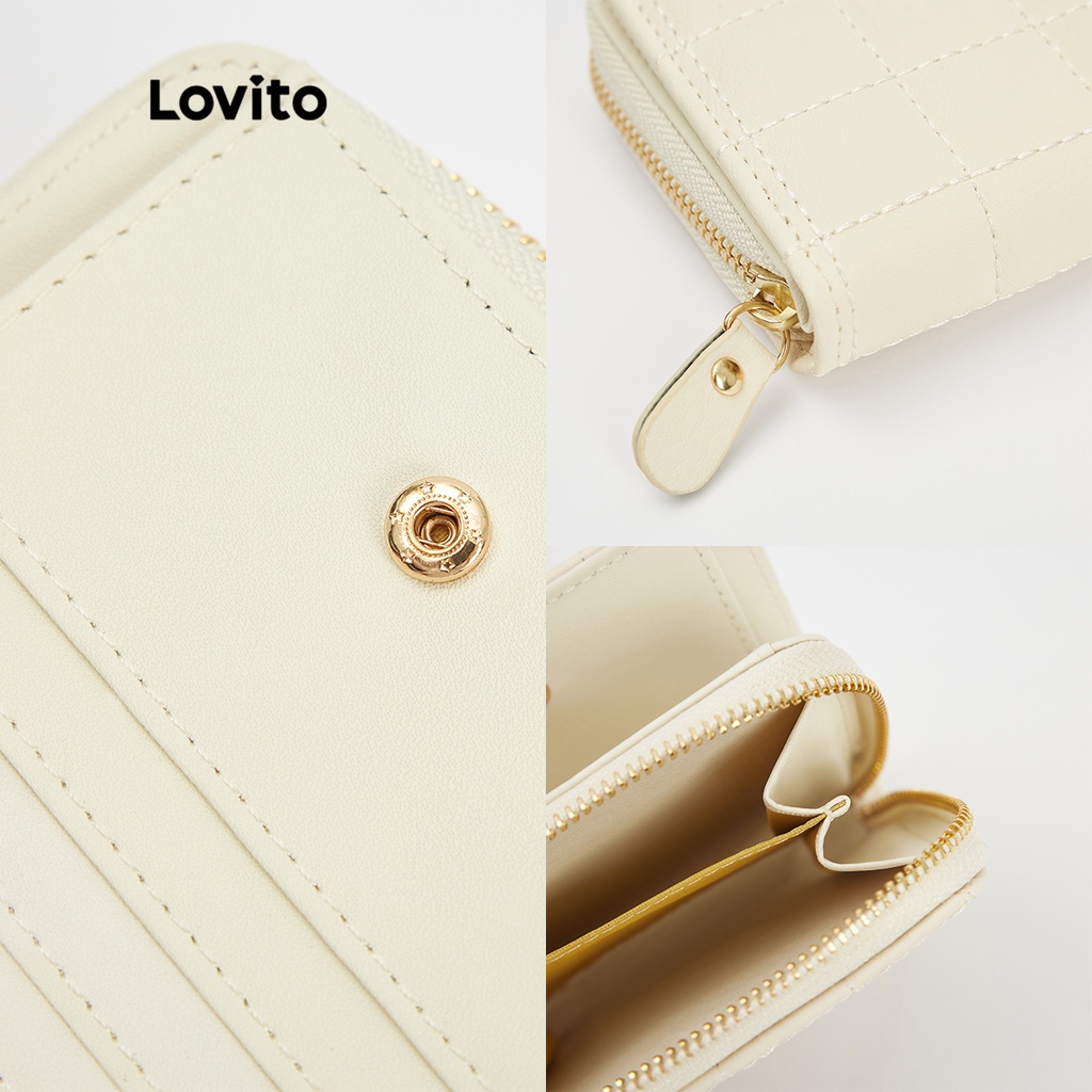 Lovito Ví nữ nhỏ gọn và dễ mang theo nhiều ngăn đựng thẻ có khóa kéo Thanh Lịch Kiểu gingham lfa08622