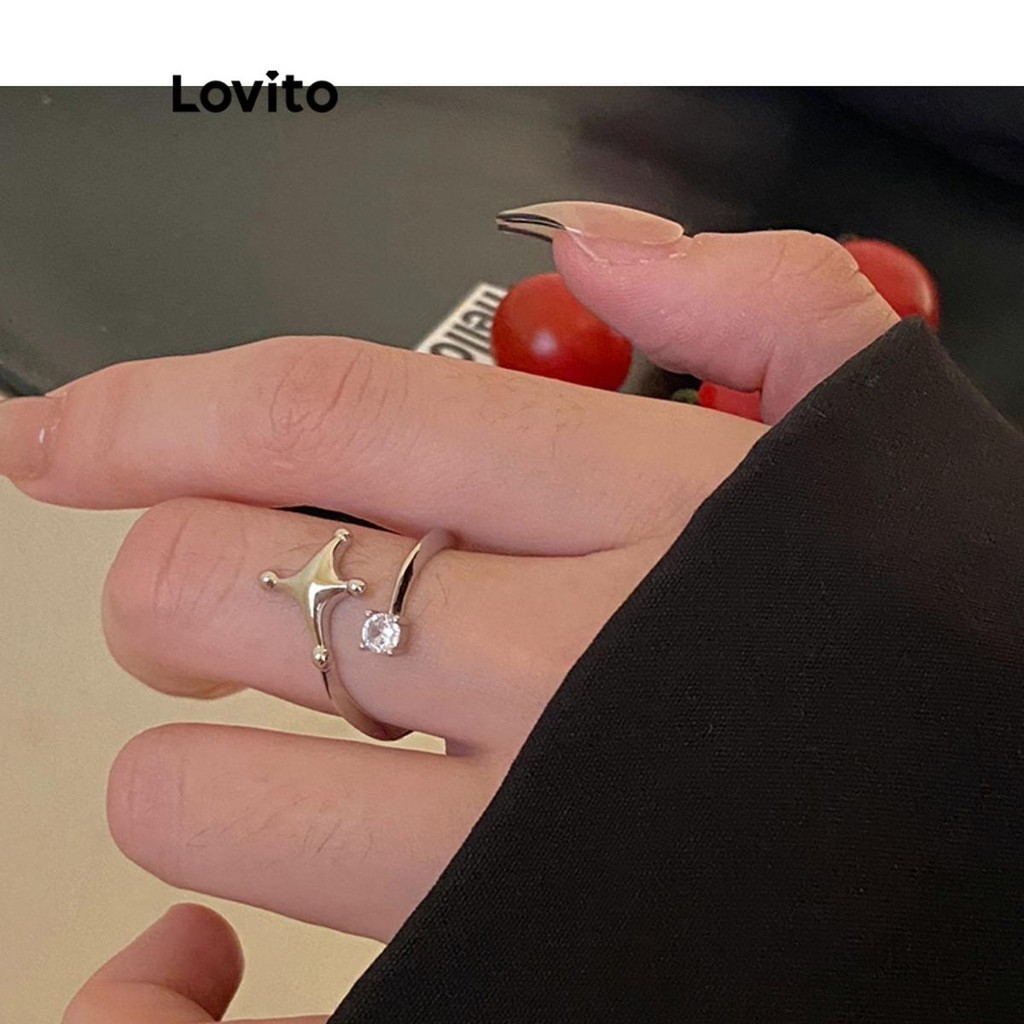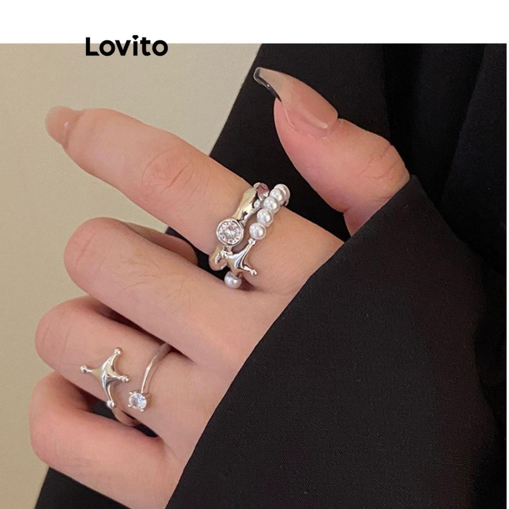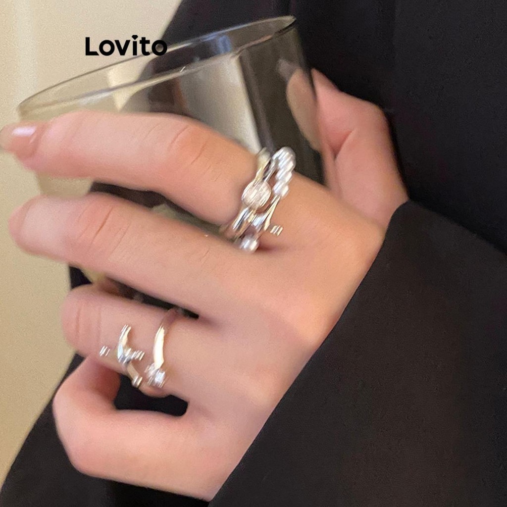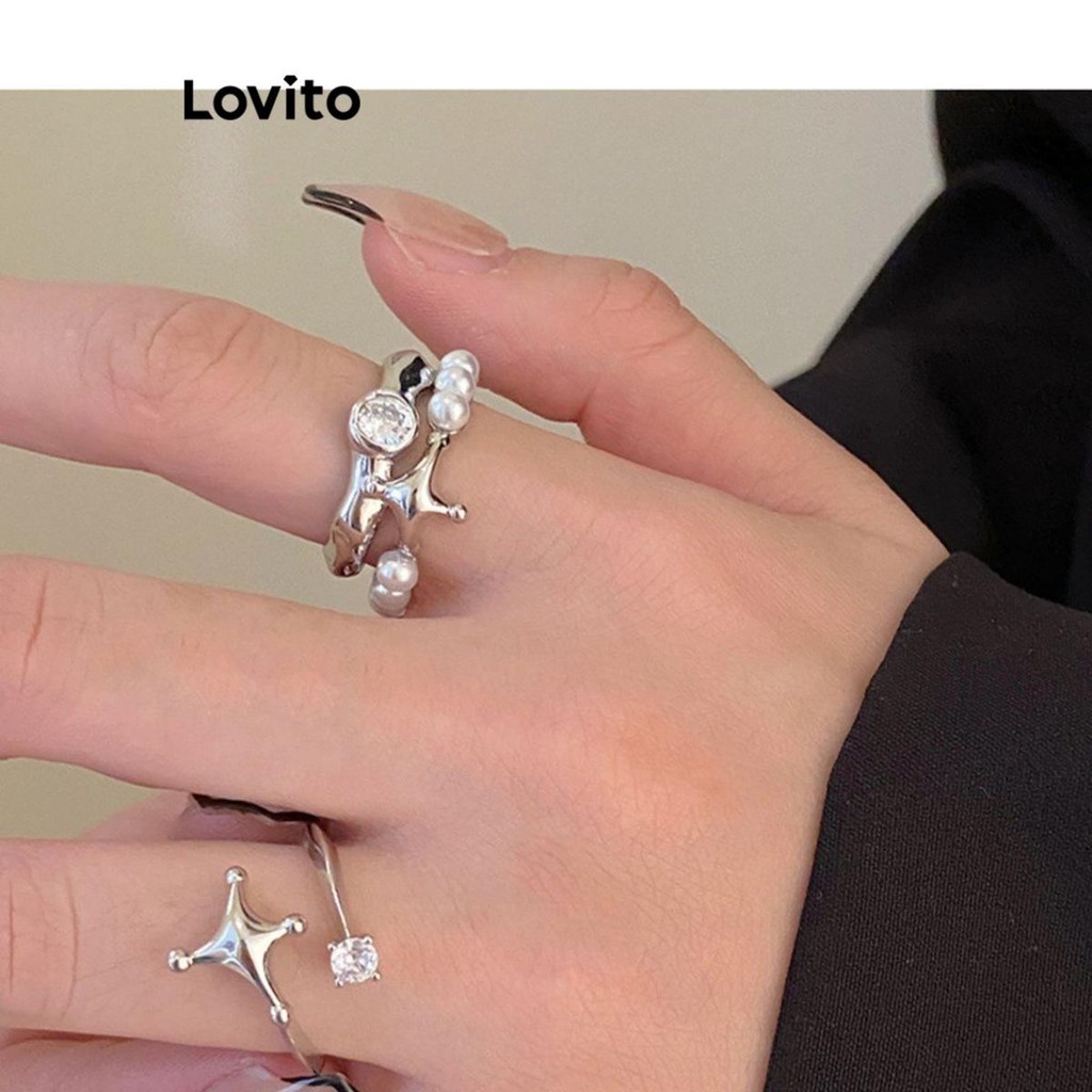 Lovito Nhẫn kim cương giả màu trơn thường ngày cho Nữ lfa01069 (Trắng/Bạc)
