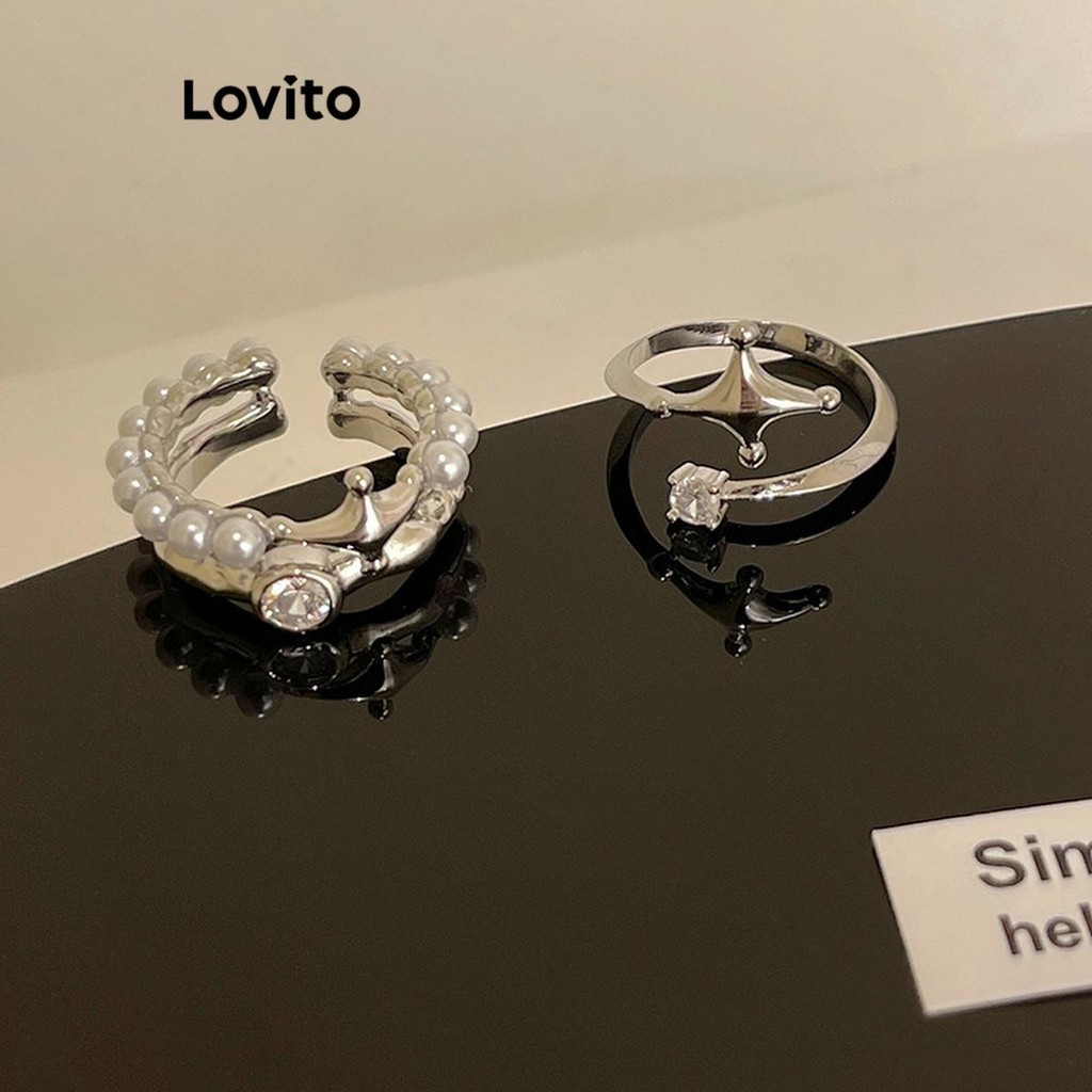 Lovito Nhẫn kim loại kiểu dáng đơn giản cổ điển hoài cổ đính đá cho nữ lfa13887