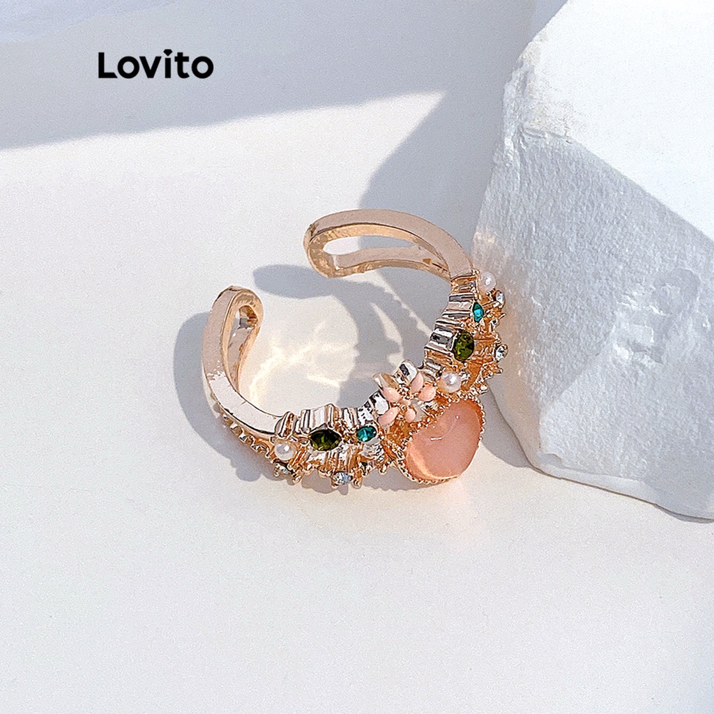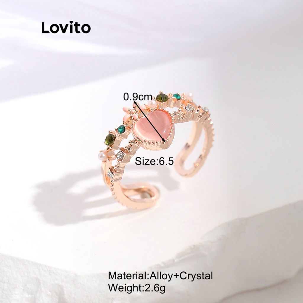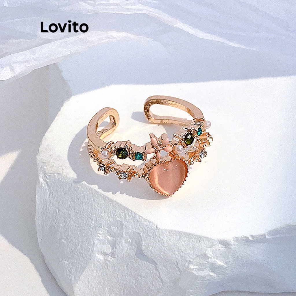 Lovito Nhẫn nữ đính đá hình trái tim màu trơn thường ngày l63ad046 (màu vàng kim)