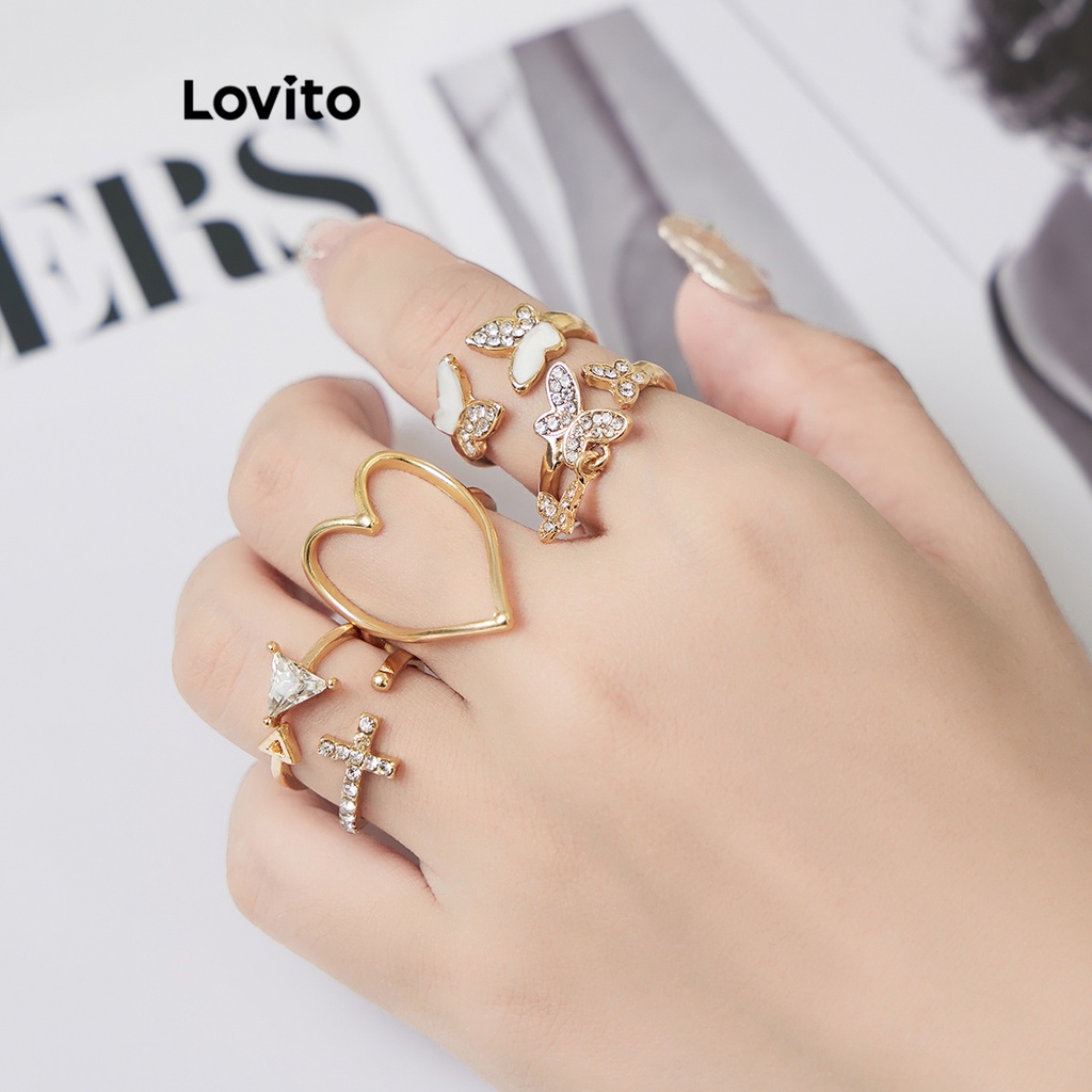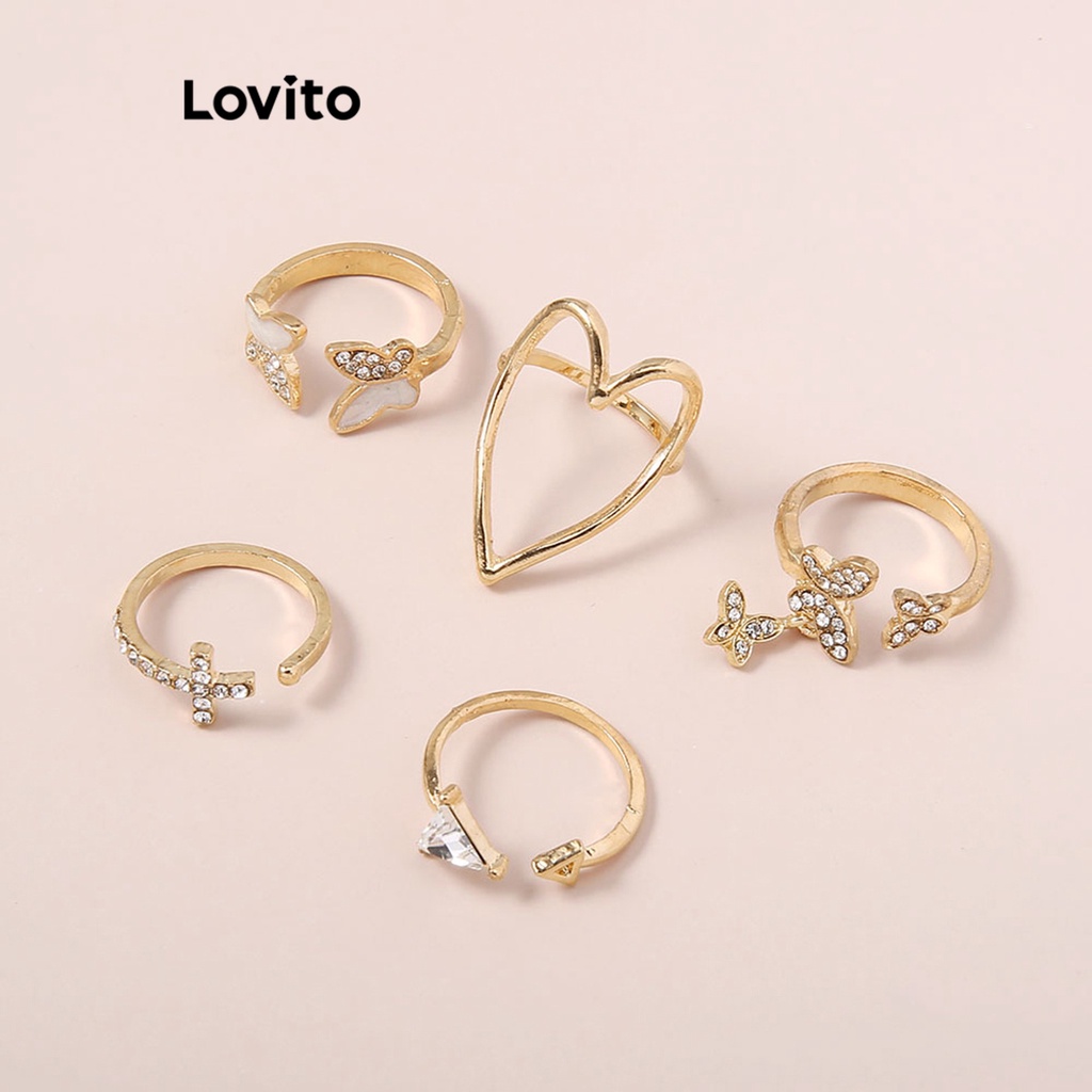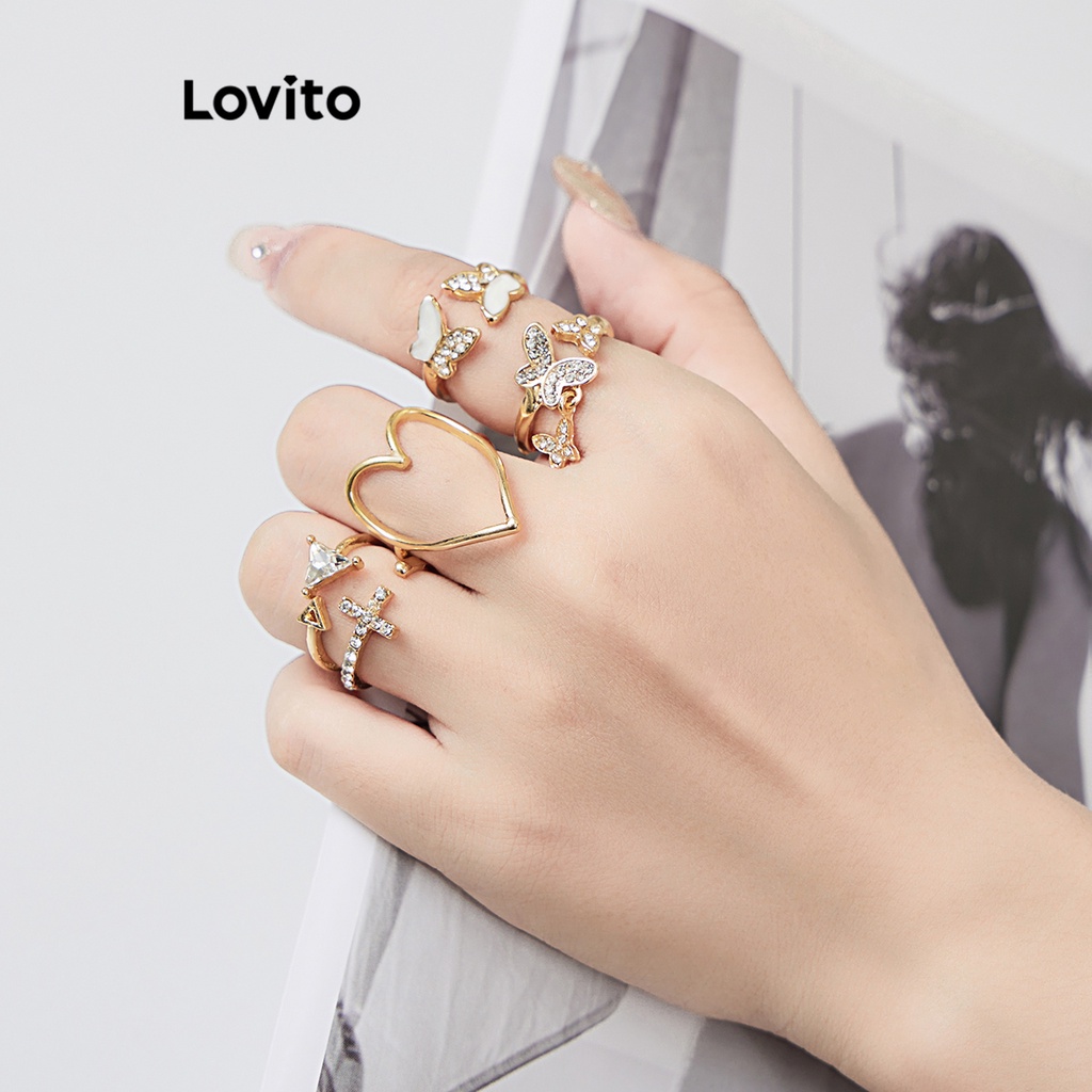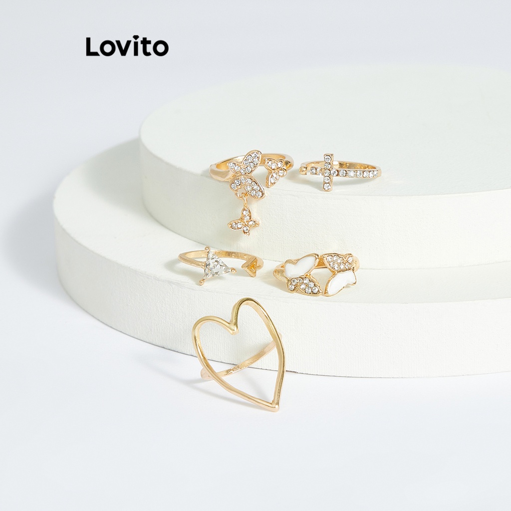 Lovito Nhẫn nữ hình trái tim bằng kim loại phong cách thường ngày l63ad037 (Vàng/Bạc)