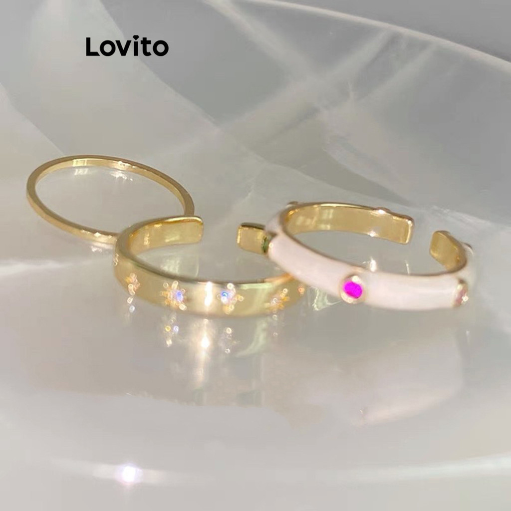 Lovito Nhẫn nữ đính đá hình trái tim màu trơn thường ngày l63ad046 (màu vàng kim)