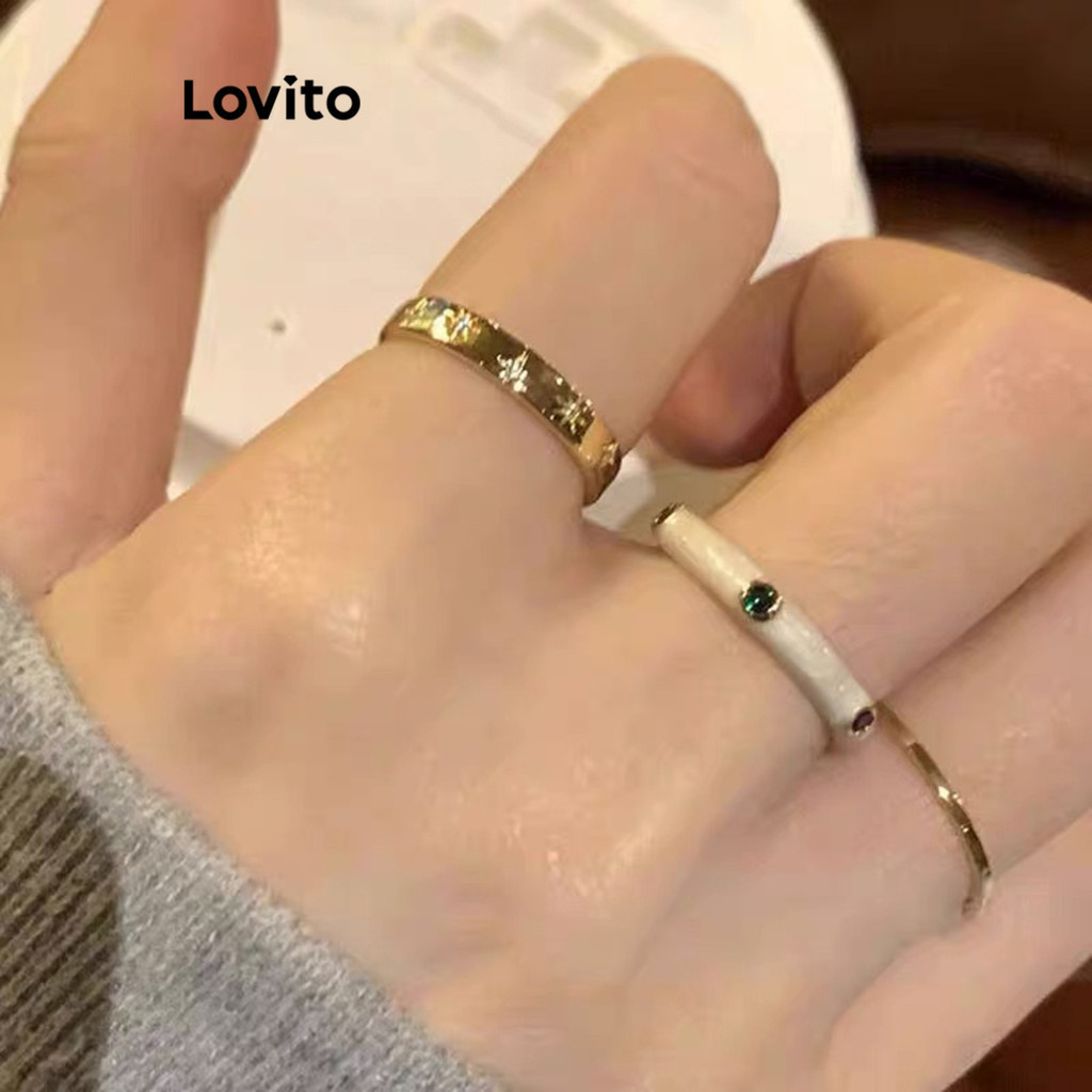 Lovito 10 chiếc Nhẫn Phong cách đơn giản đơn giản phối họa tiết rắn l004007 (màu vàng kim)