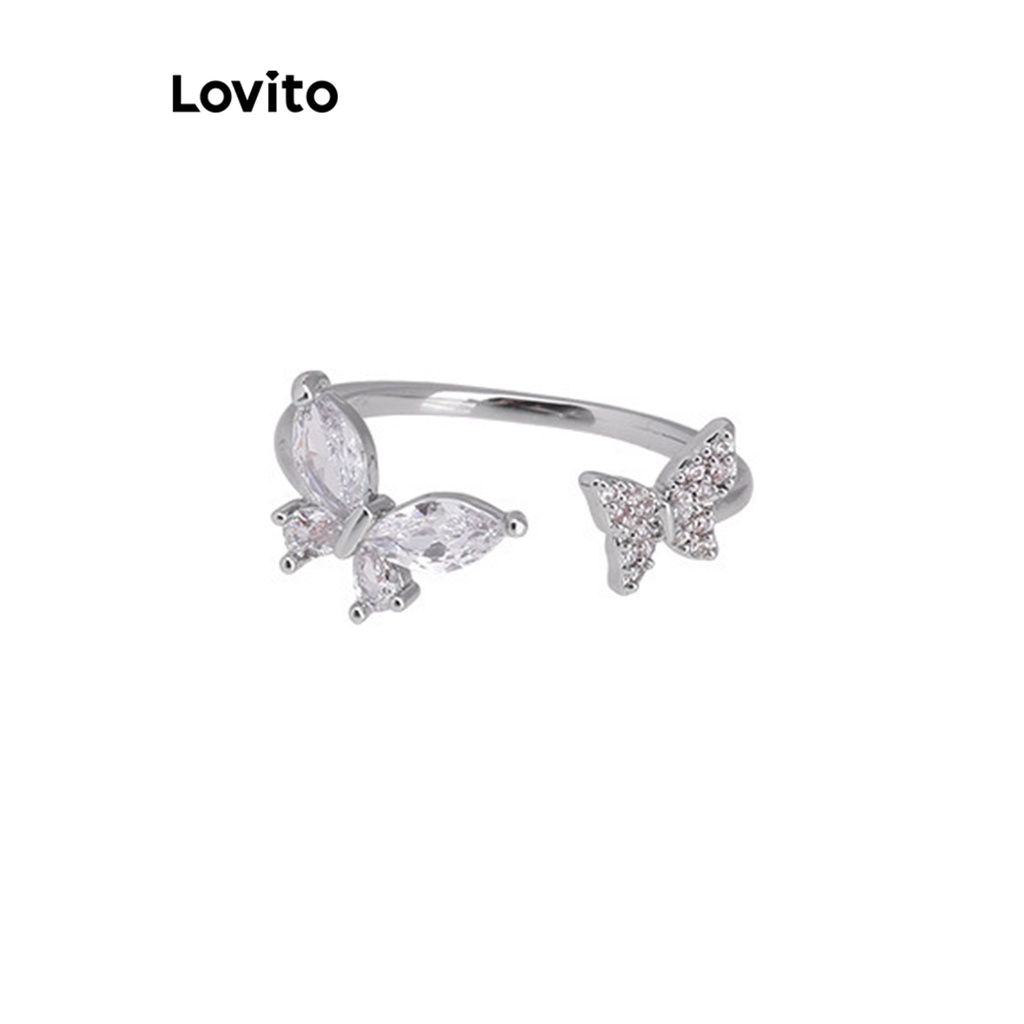 Lovito Nhẫn kim cương giả màu trơn thường ngày cho Nữ lfa01069 (Trắng/Bạc)