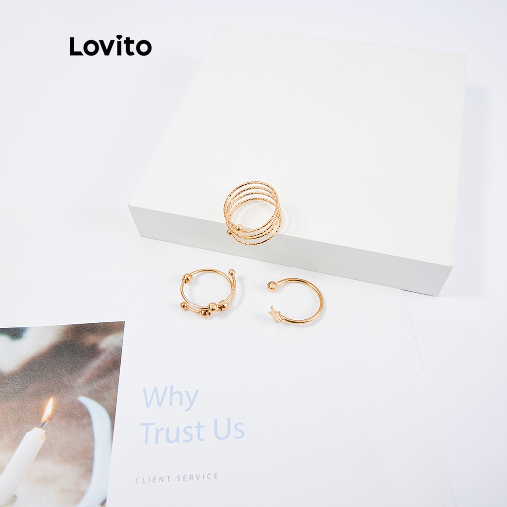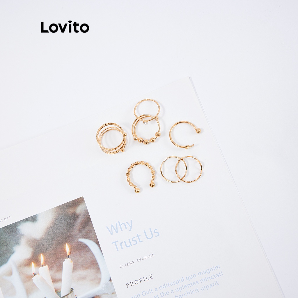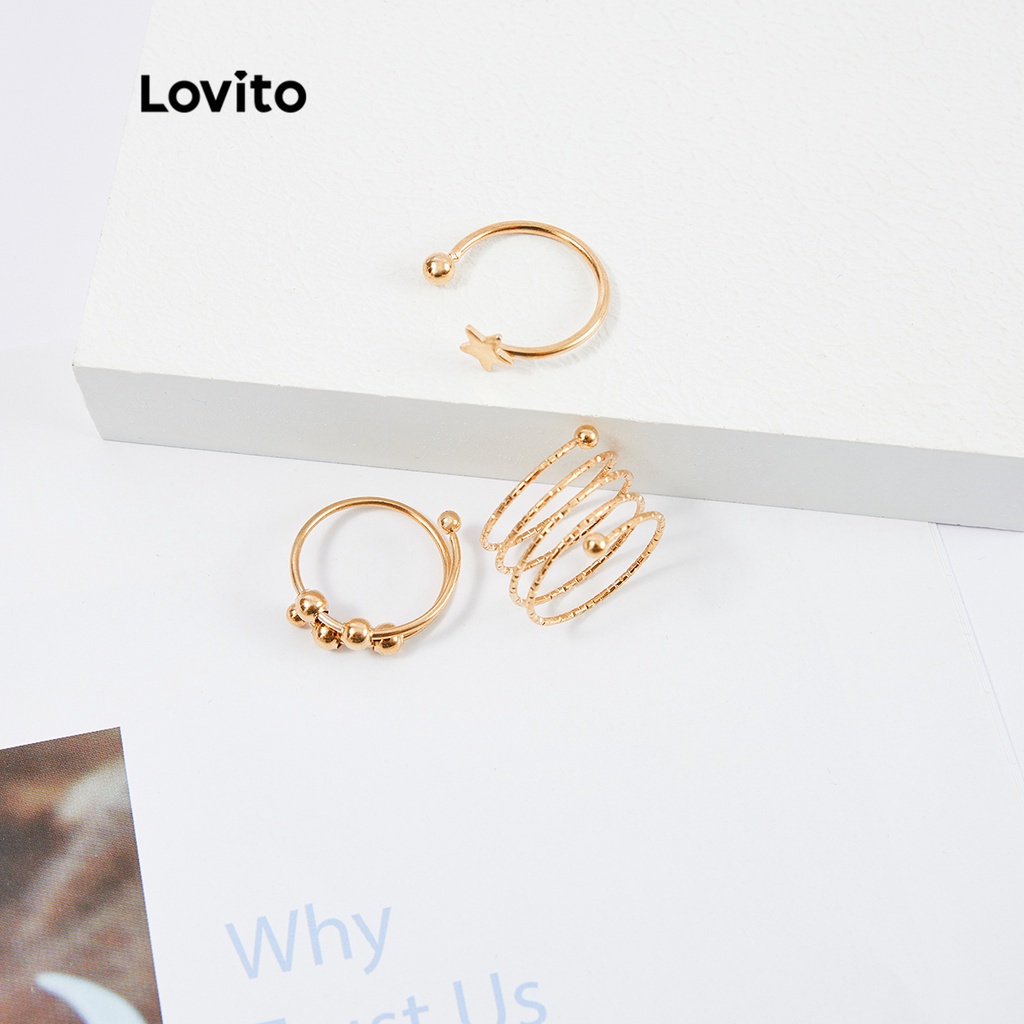 Lovito 11 chiếc Bộ nhẫn kim loại Bộ lạc cho nữ thường ngày l63ad034 (Vàng/Bạc)