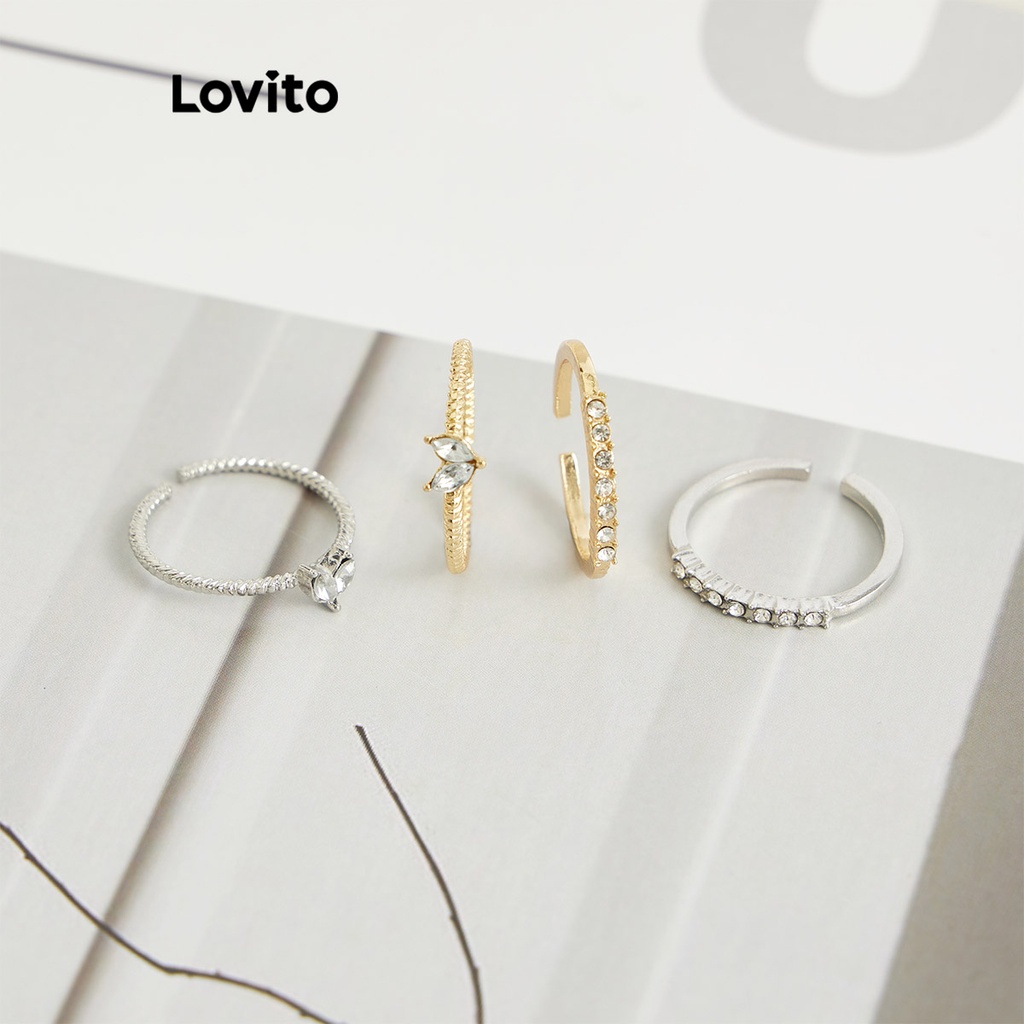 Lovito 11 chiếc Bộ nhẫn kim loại Bộ lạc cho nữ thường ngày l63ad034 (Vàng/Bạc)