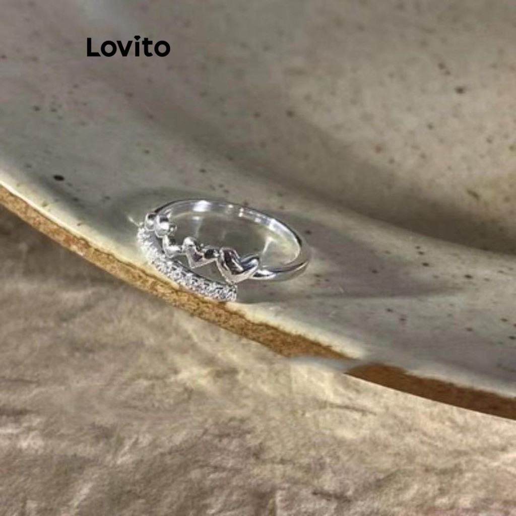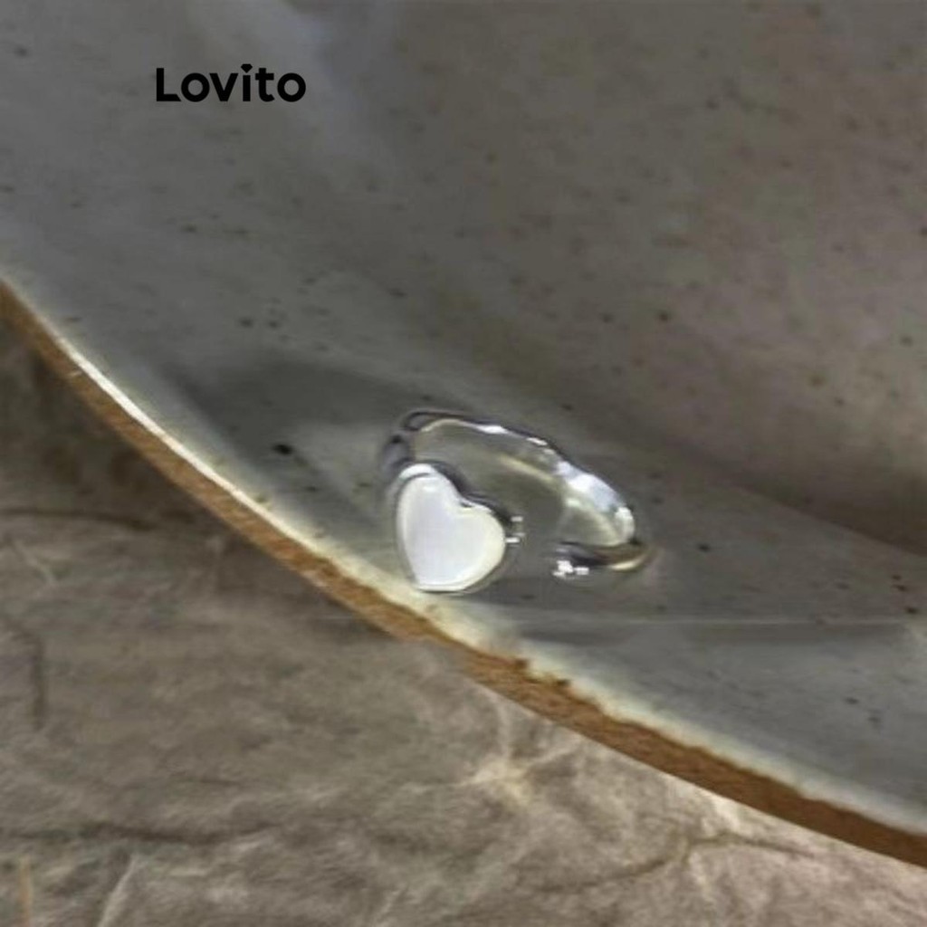 Lovito Nhẫn nữ đính đá hình trái tim màu trơn thường ngày l63ad046 (màu vàng kim)